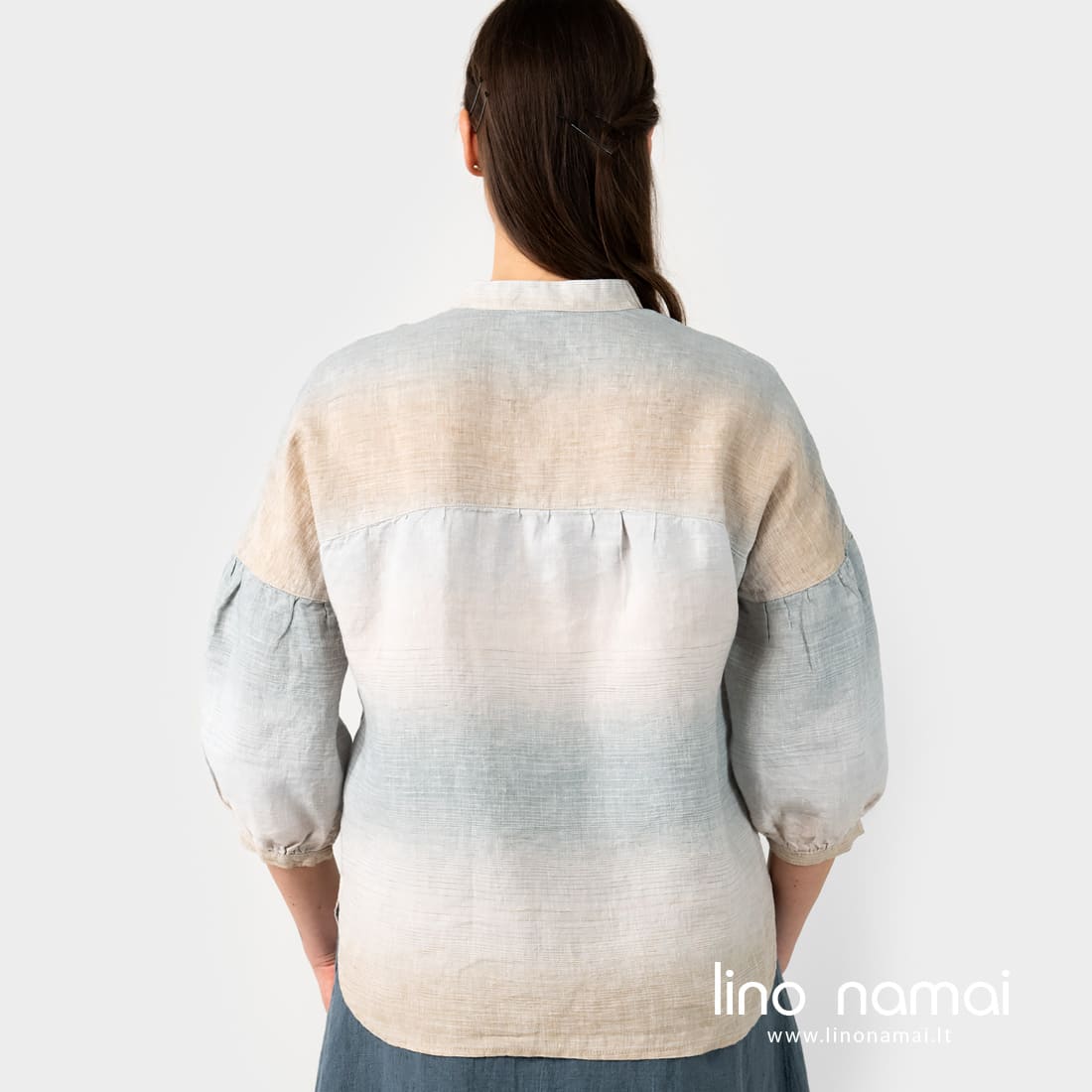 • Lininė dryžuota palaidinė, nugaros pusė