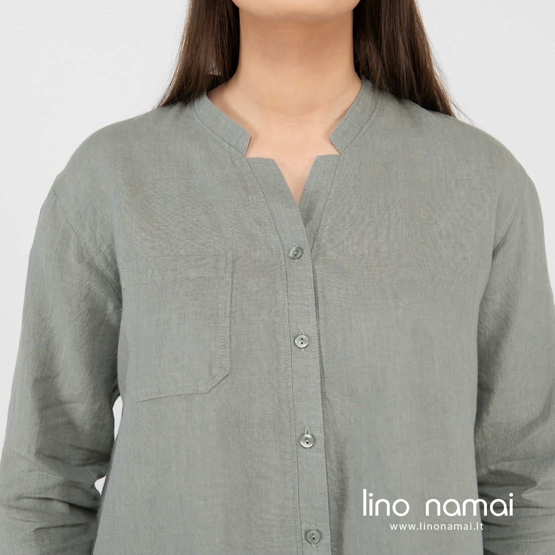 • Lininė žalsva palaidinė ilgom rankovėm.