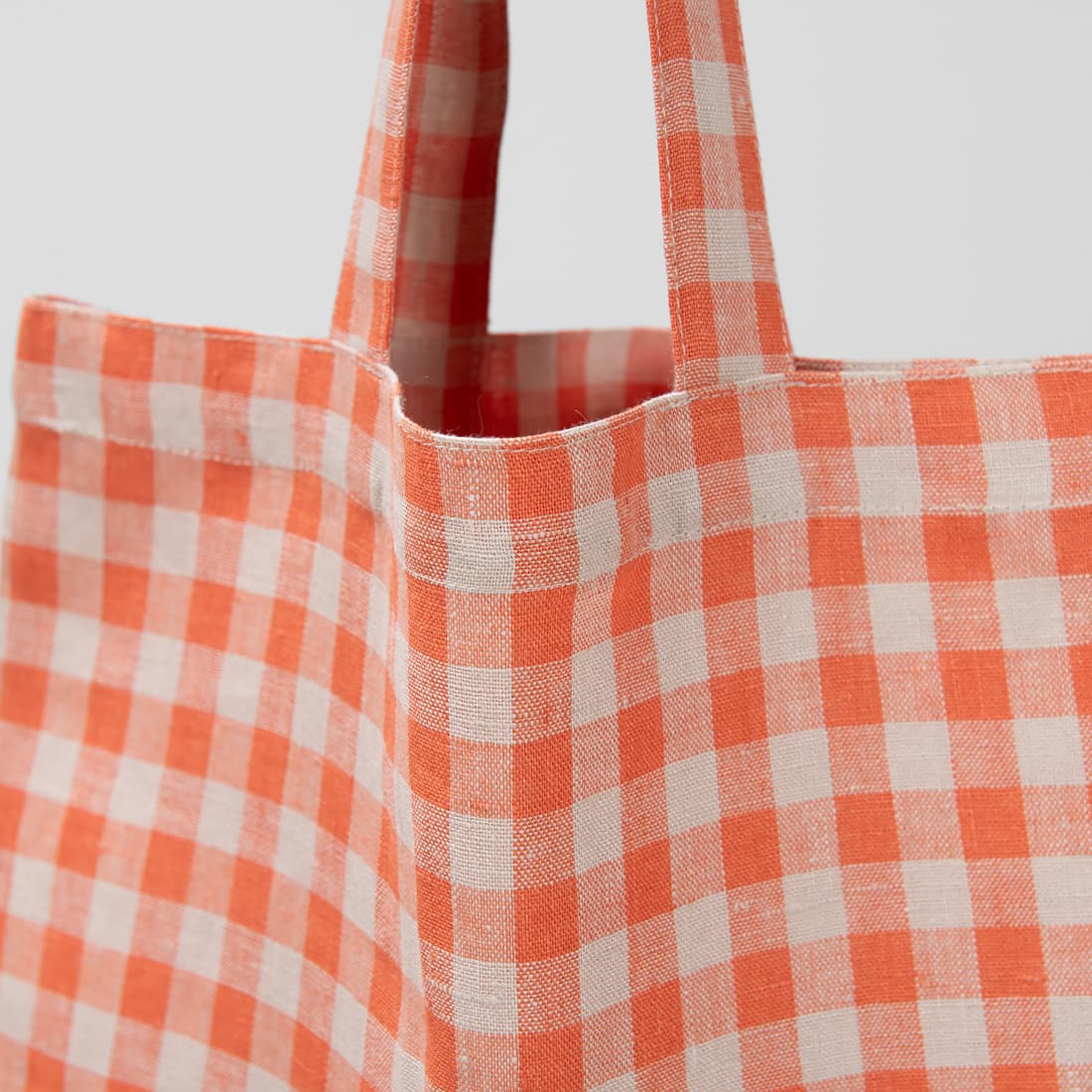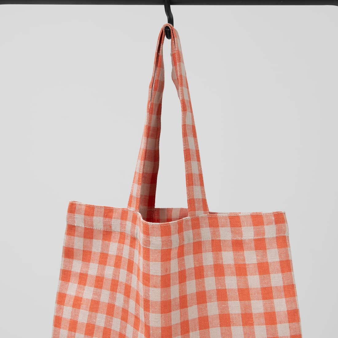 • Lininis pirkinių krepšelis oranžiniais ir rusvais langeliais