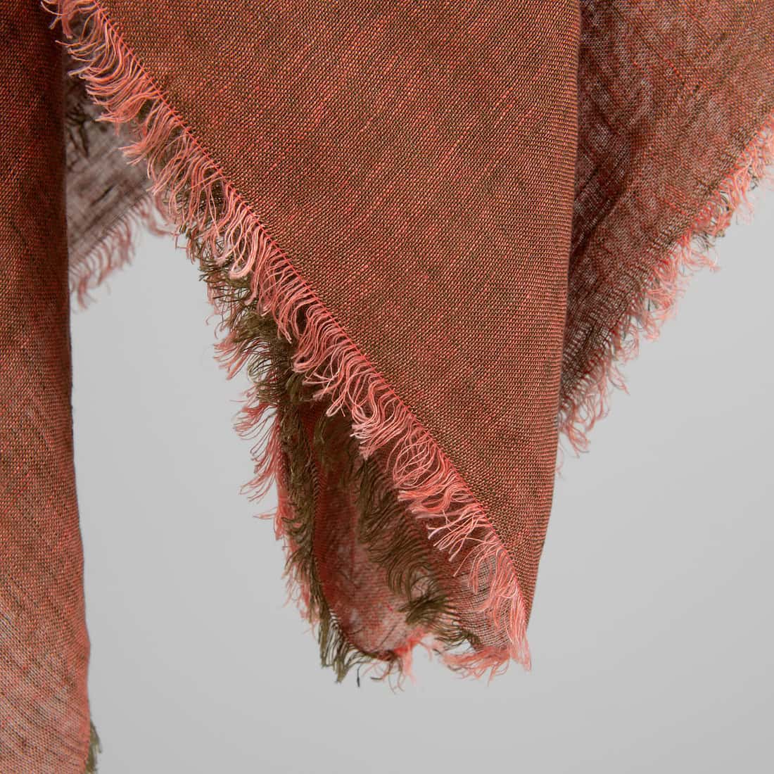 - Spalva: suausti samanų (rudai žalios) ir lašišos raudonos spalvos verpalai, melanžas