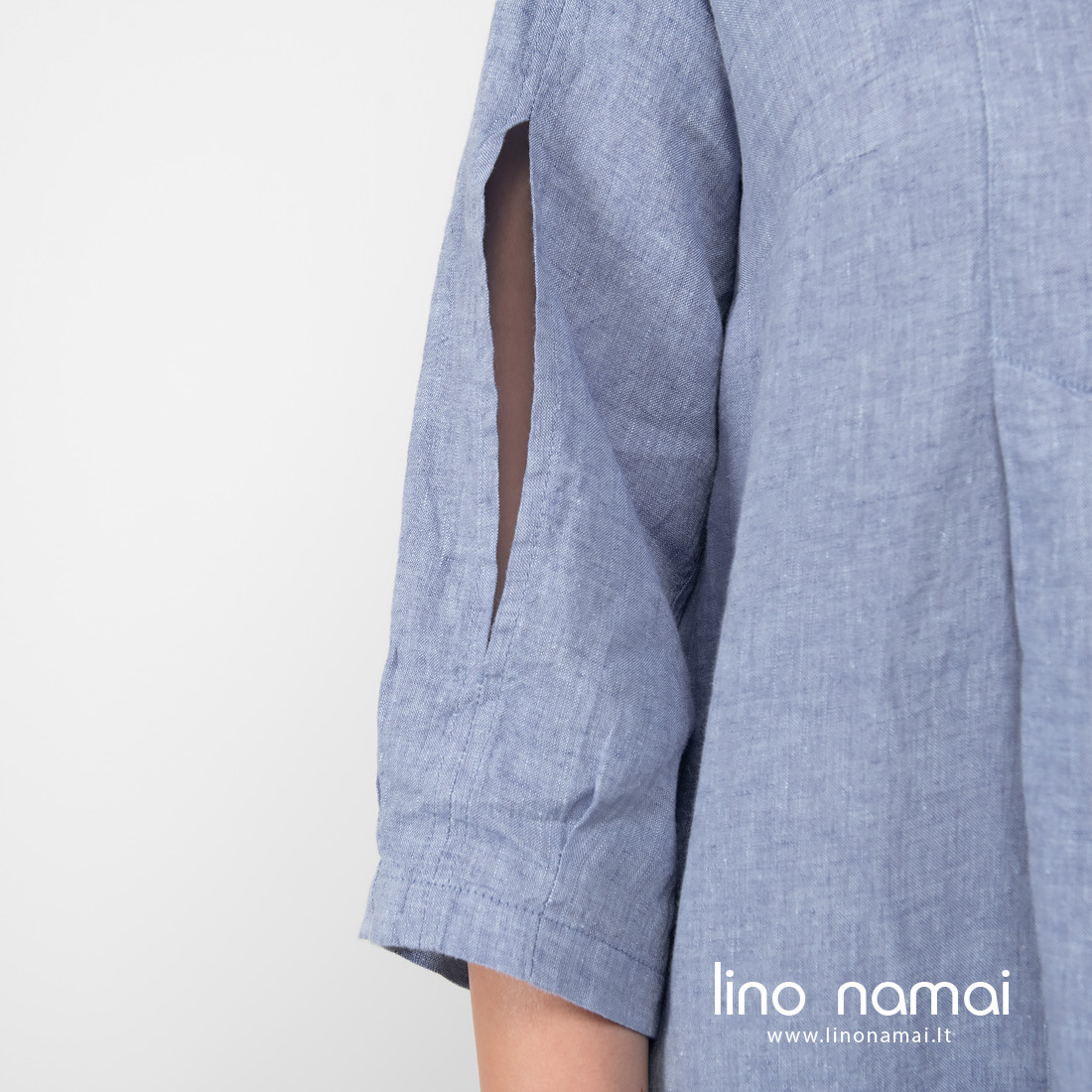 • Lininė suknelė su kiauromis rankovėmis, su sagytėmis.
