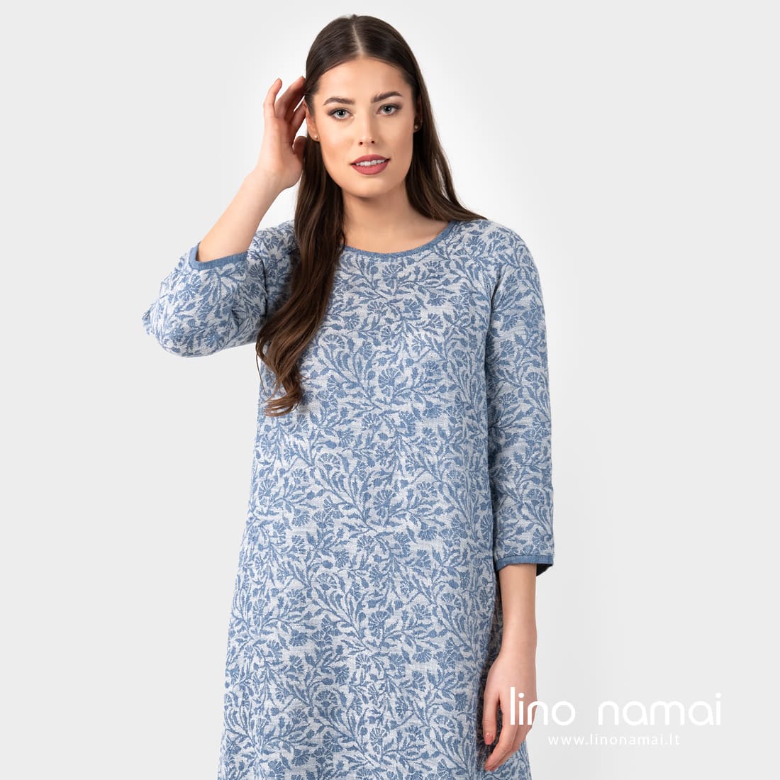 • Lininė gėlėta suknelė 3/4 rankovėmis