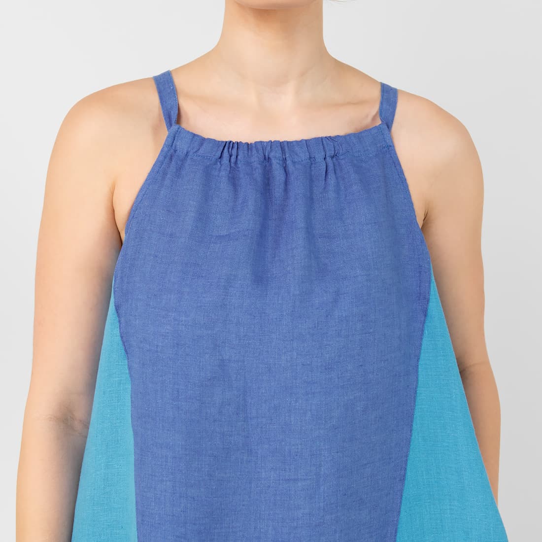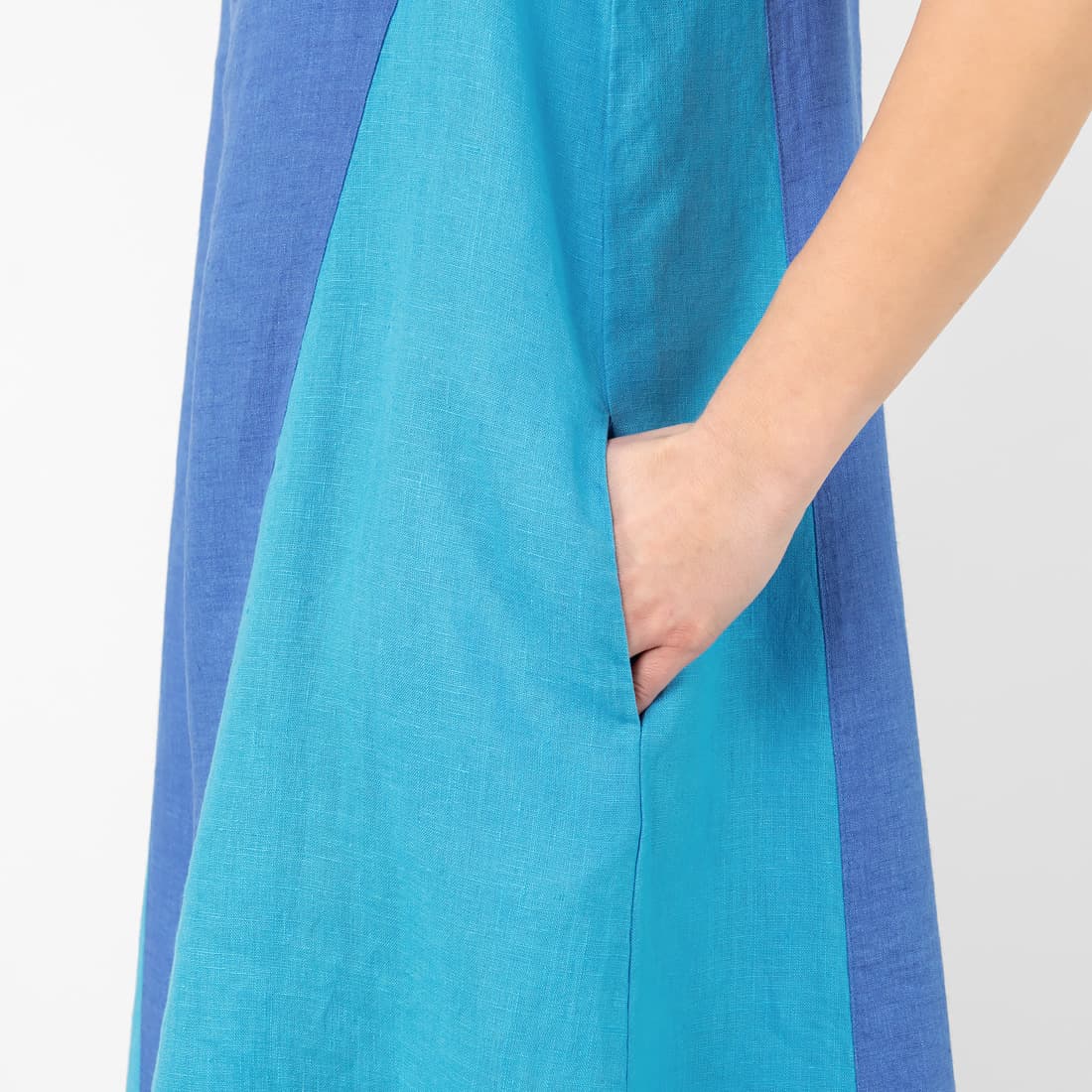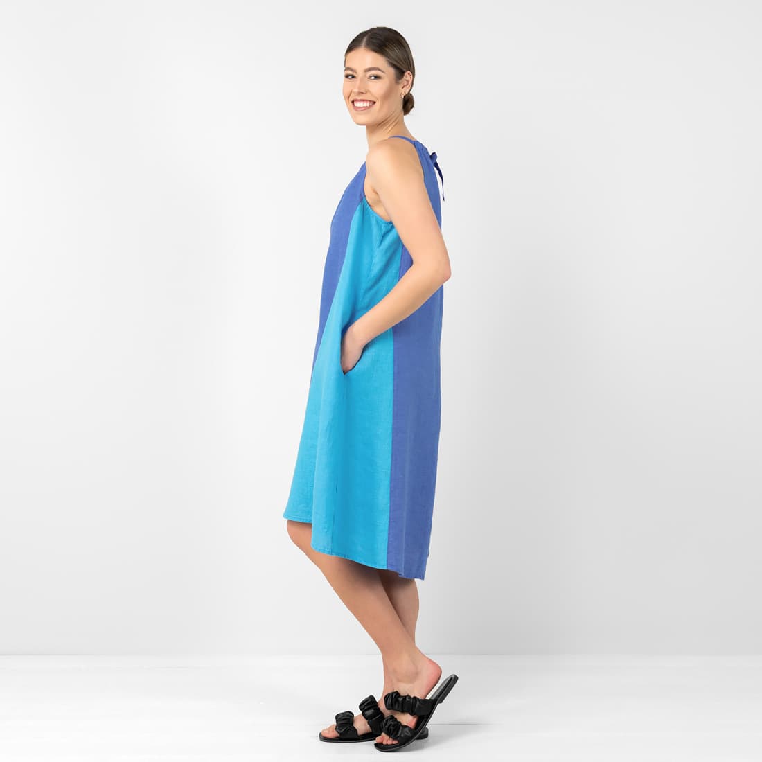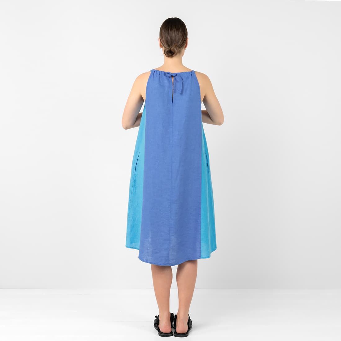 • Lininė suknelė iš šviesiai ir tamsiai mėlyno audinio