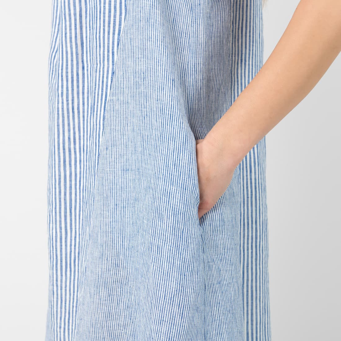 • Lininė mėlynai dryžuota suknelė su kišenėmis