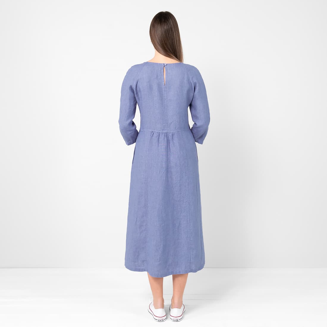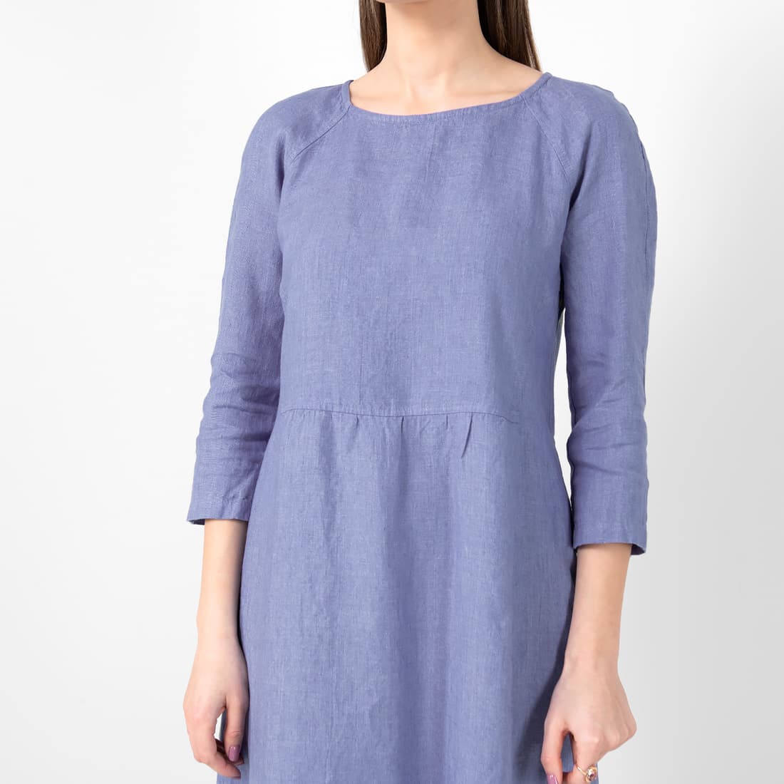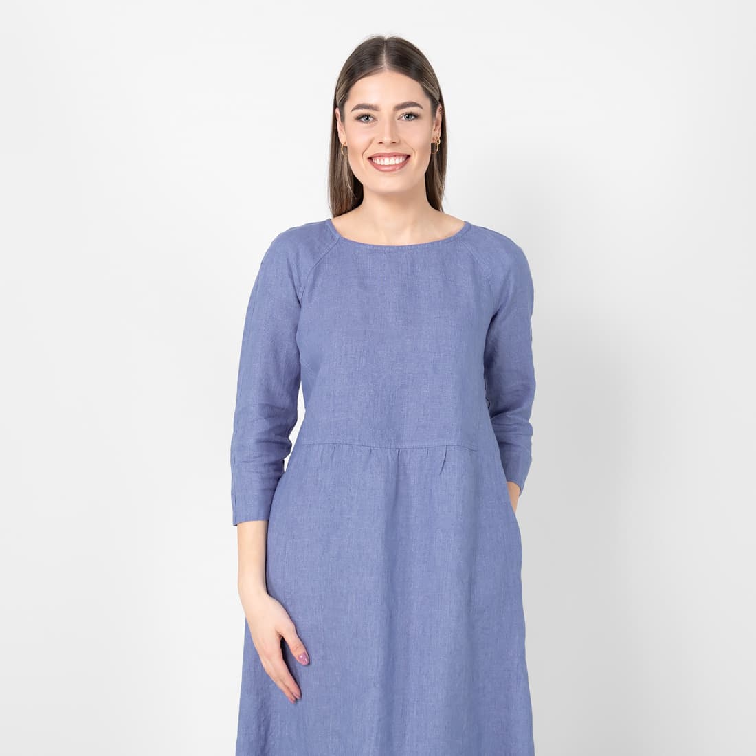 • DELFINA lininė mėlyna suknelė su 3/4 rankovėmis