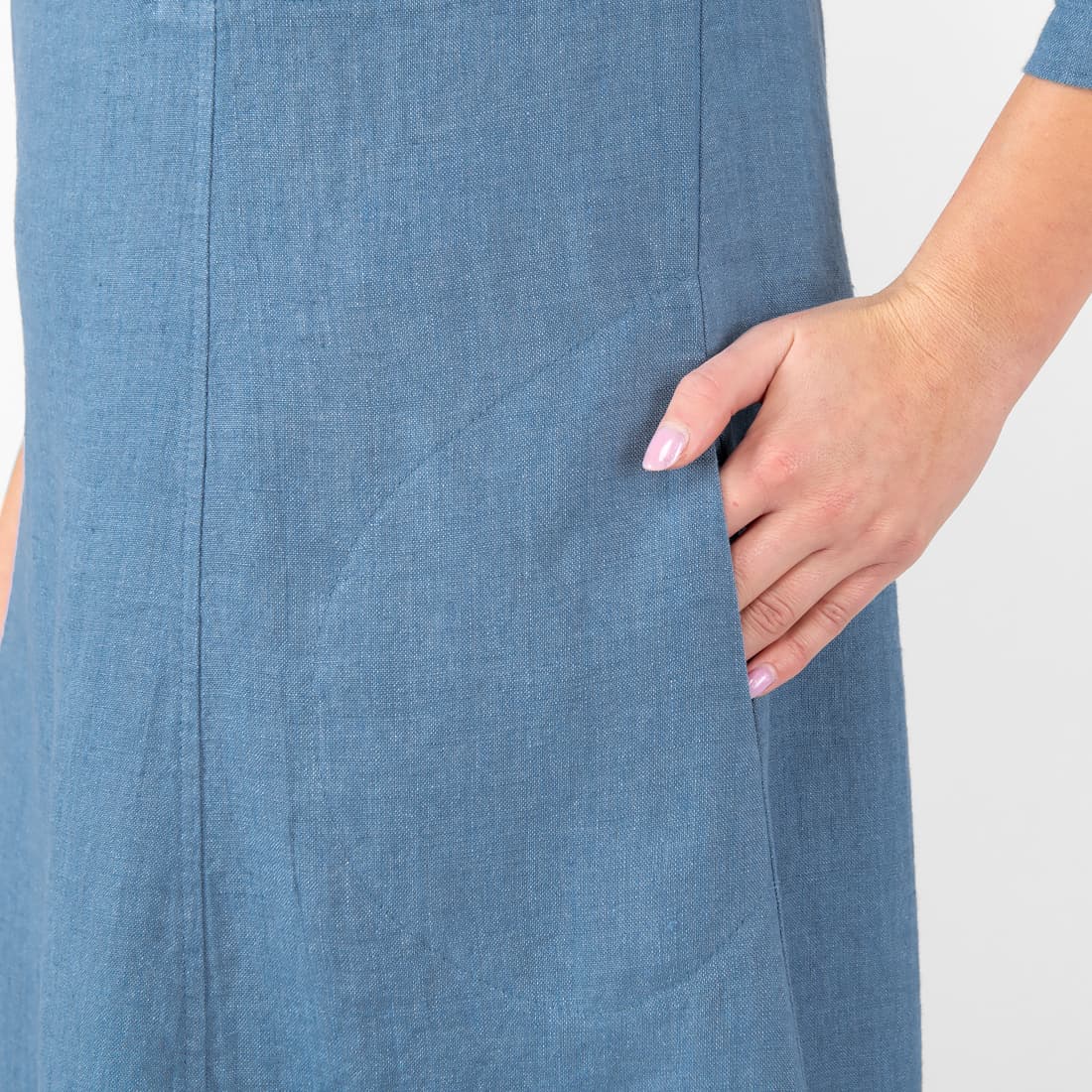 • Lininė mėlyna suknelė su kišenėmis