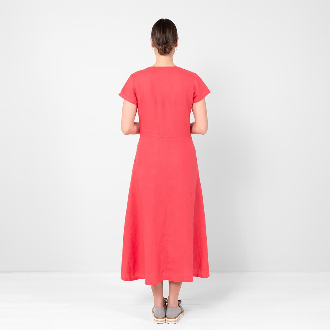 • LAUREN lininė ilga koralo raudonumo suknelė