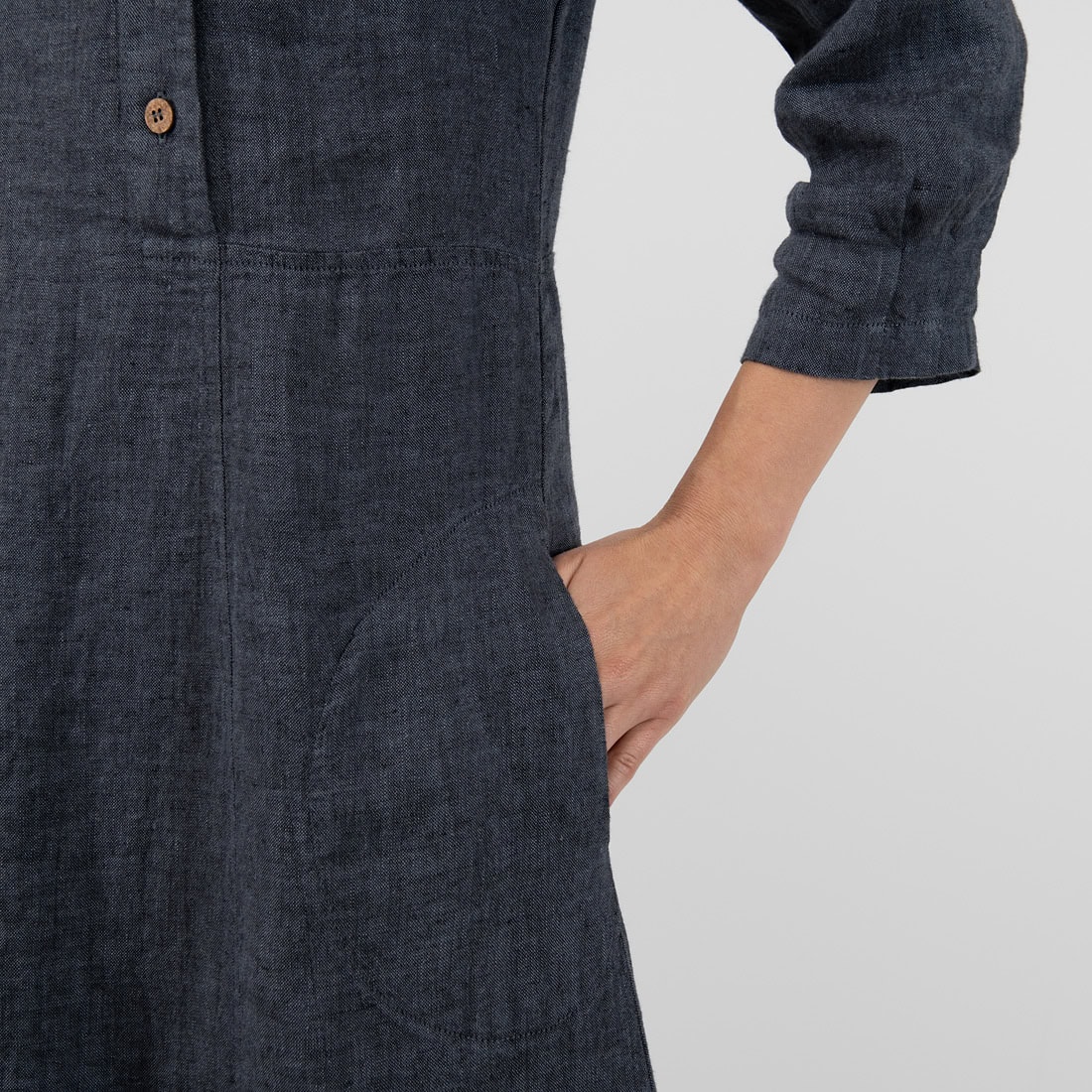- Tvirtas, vidutinio storio lino audinys po specialaus skalbimo tapo minkštas, švelnus, malonus liesti. Drabužis skalbiamas nebesitrauks.