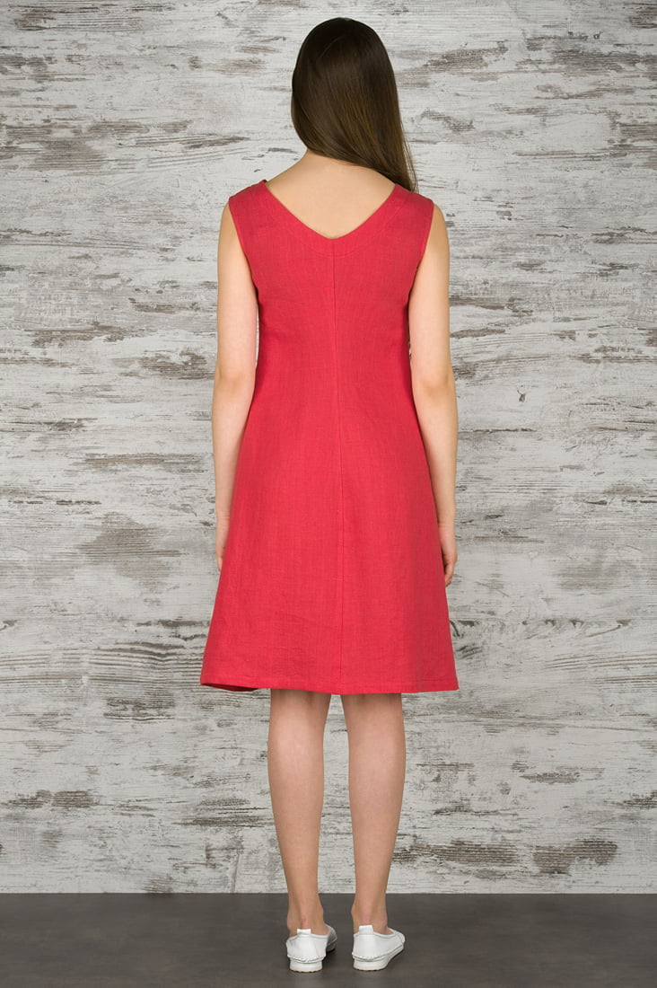Avietinės spalvos 100% lininio audinio suknelė tebus ryškiaspalvis patogus drabužis Jūsų atostogoms. Subtilus dizainas, akį traukianti spalva ir netikėta detalė nugaroje - praeiviai tikrai Jus palydės susidomėjusiais žvilgsniais.