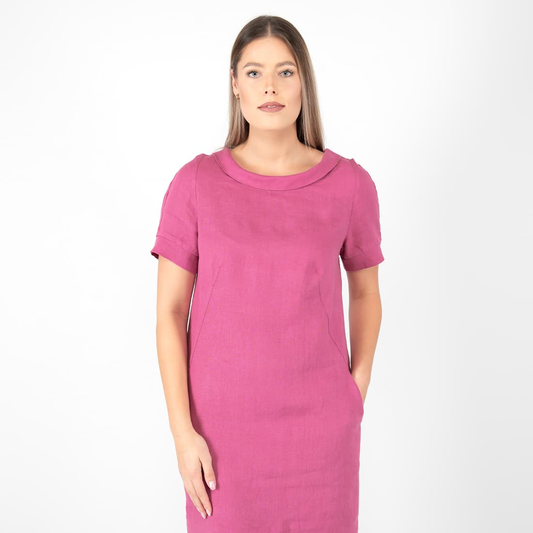 • Lininė sodriai rožinė tiesaus silueto suknelė