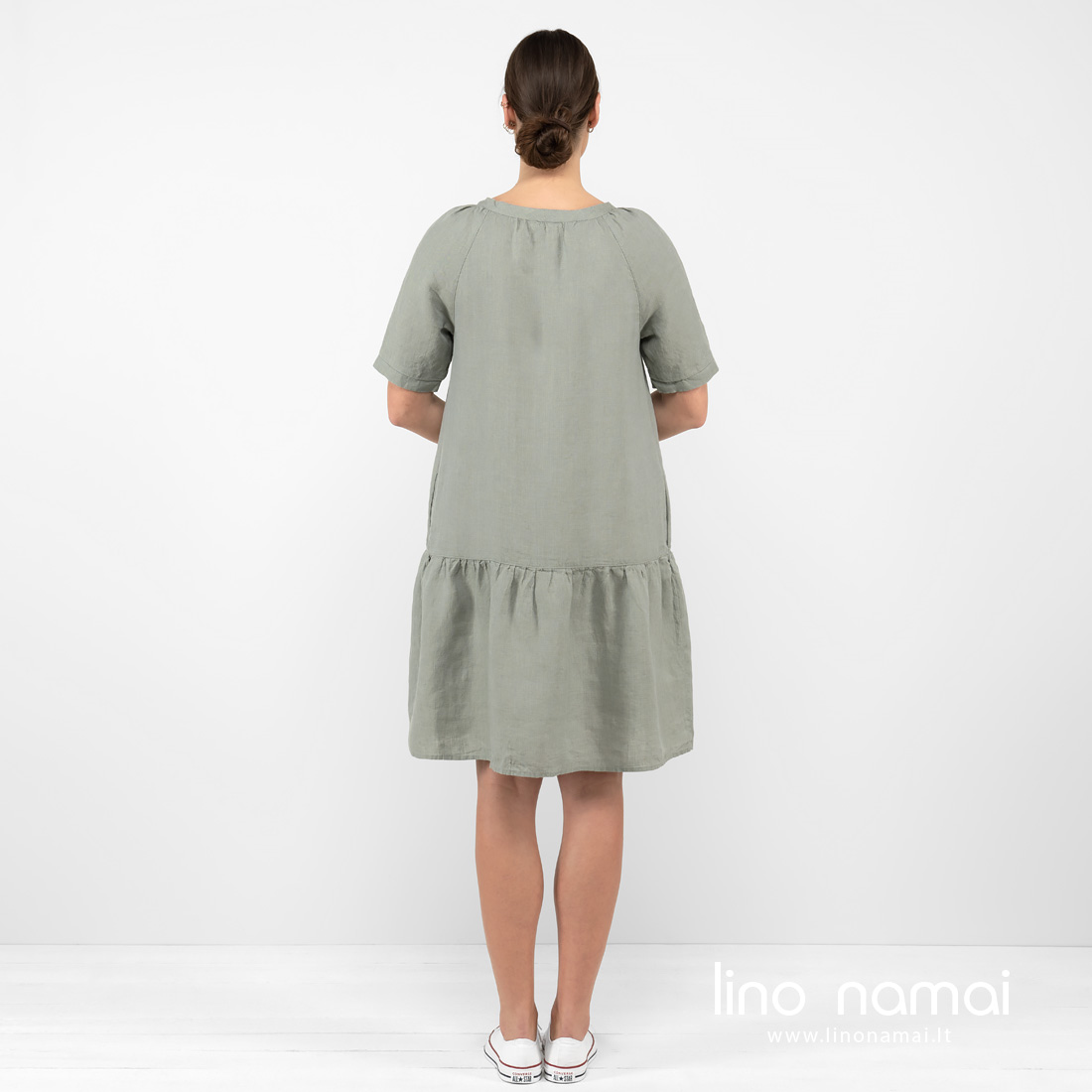 • Lininė suknelė žalsva iš nugaros.