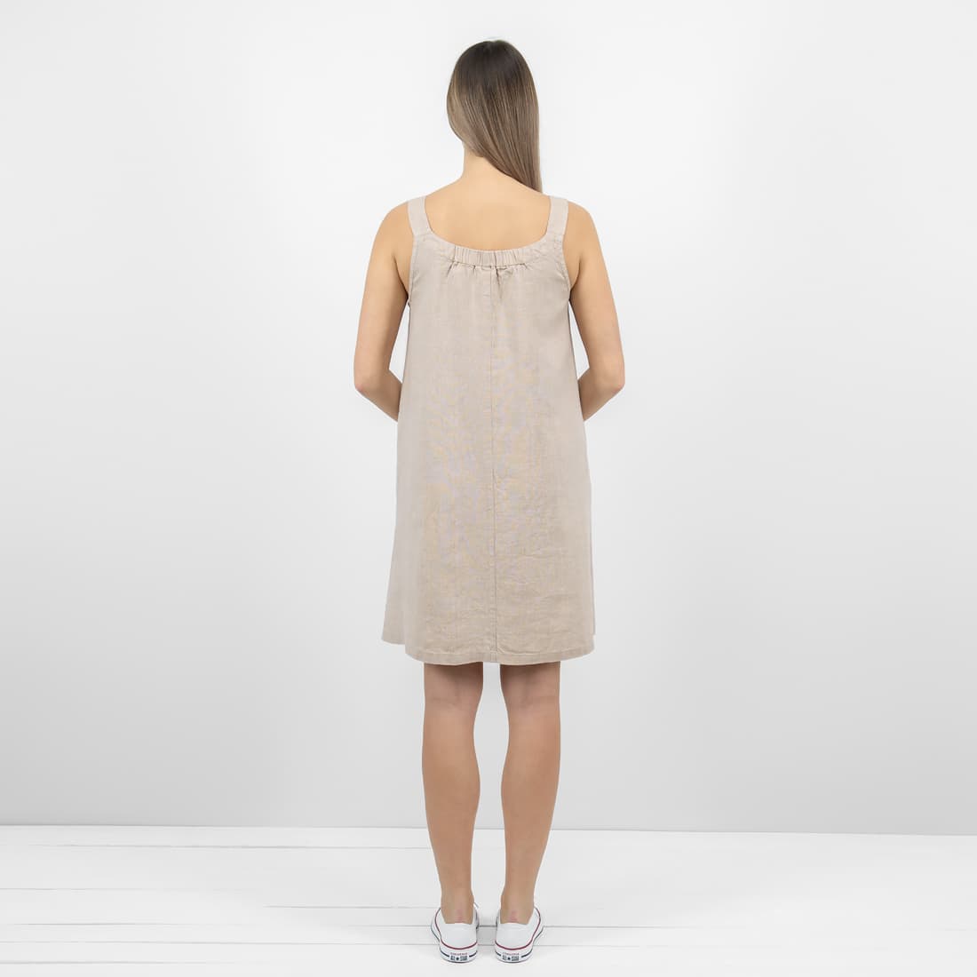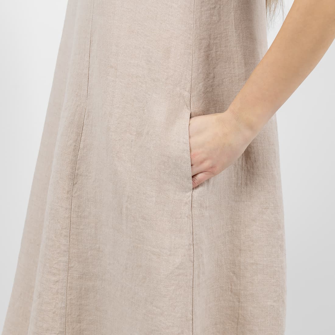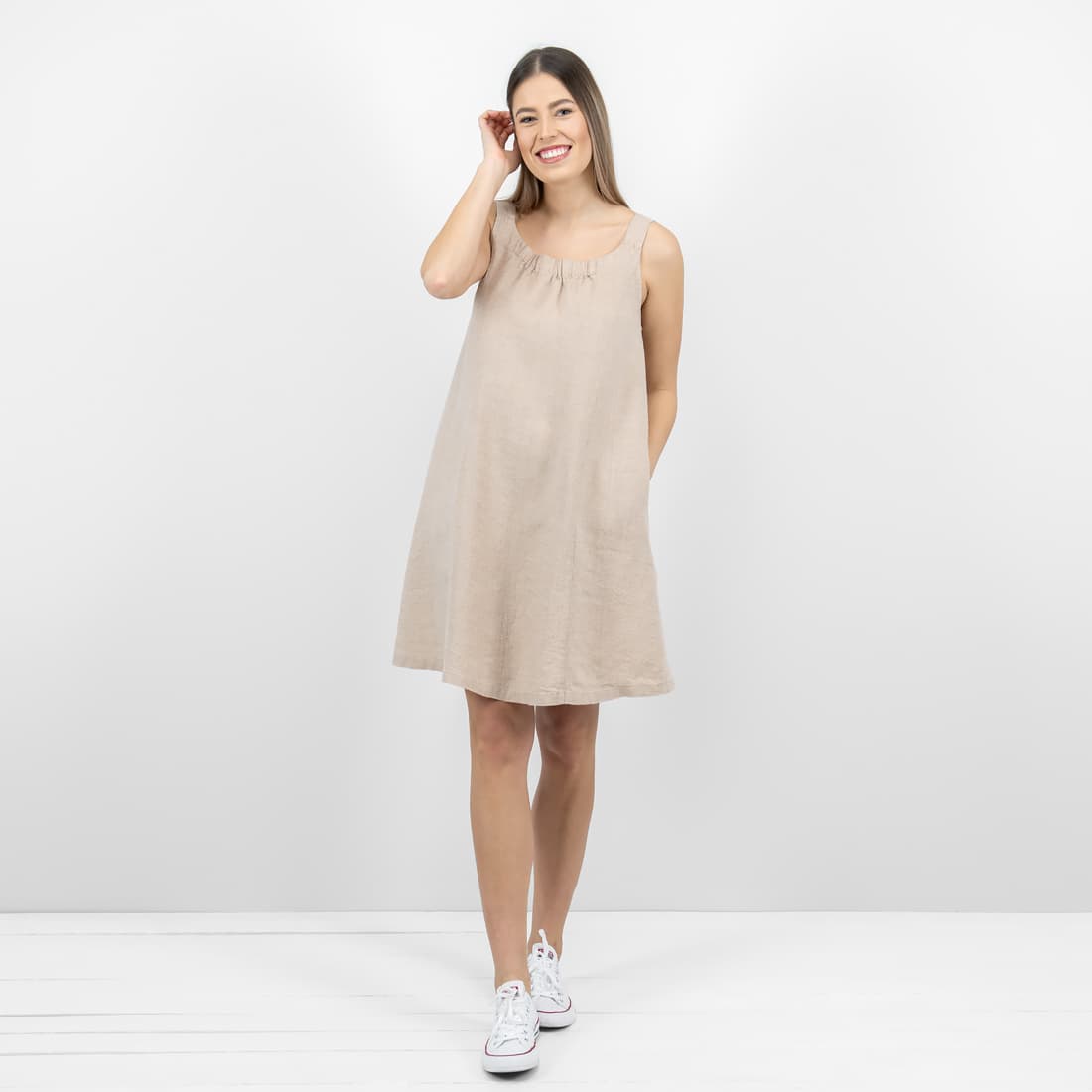 • Lininė rusva suknelė su kišenėmis
