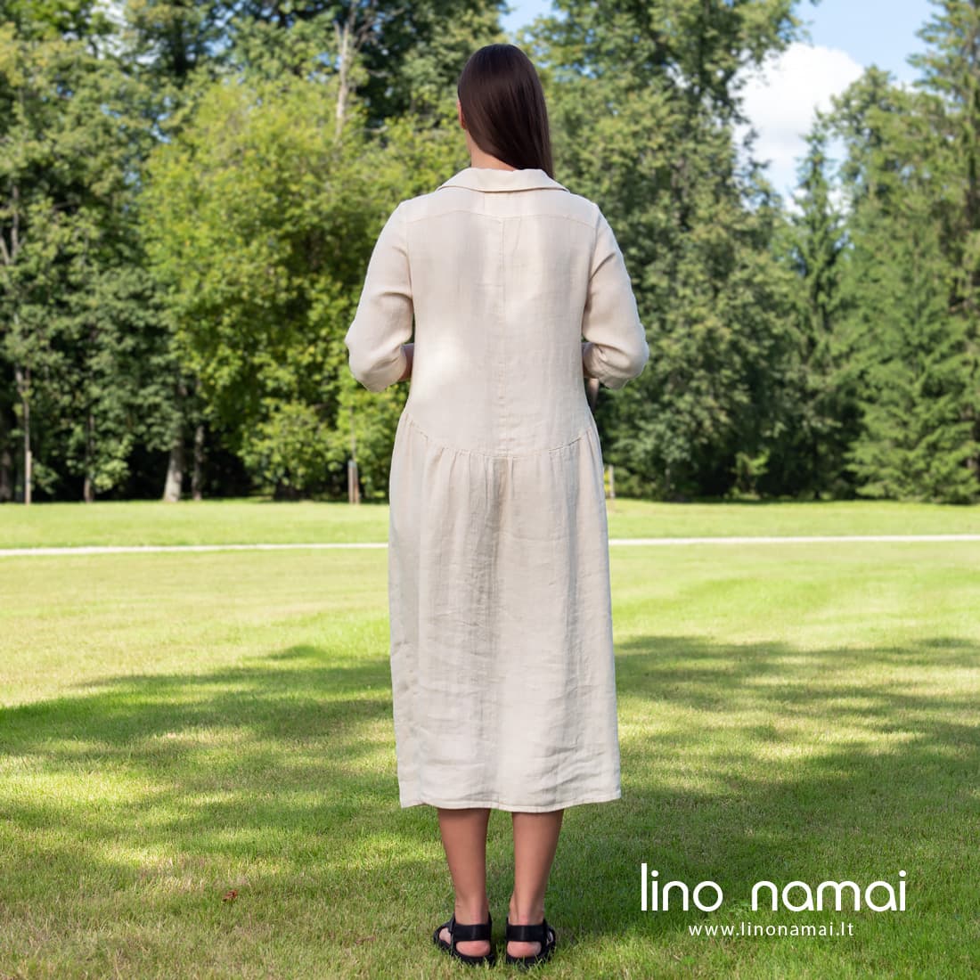 • Lininė smėlio spalvos suknelė, nugaros pusė