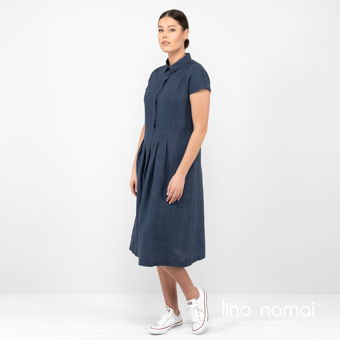 • Lininė tamsiai mėlyna suknelė, sagytės priekyje.