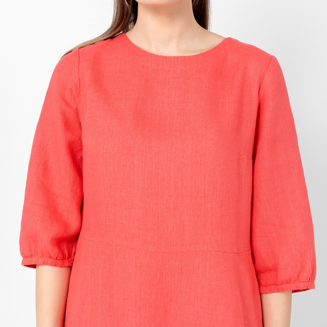 • OSAKA raudona lininė suknelė su 3/4 rankovėmis