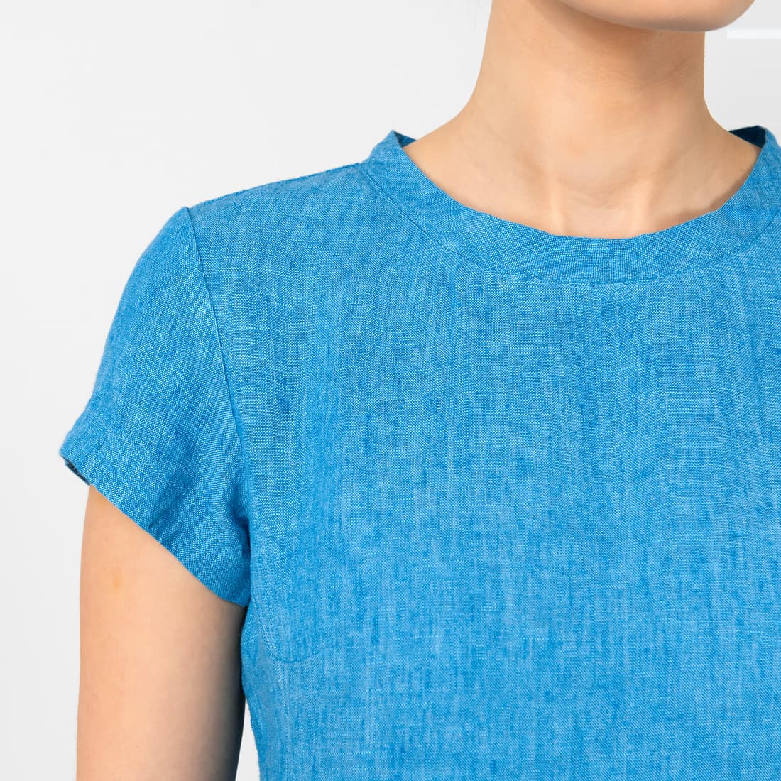 • SIMA lininė mėlyna suknelė apvalia iškirpte