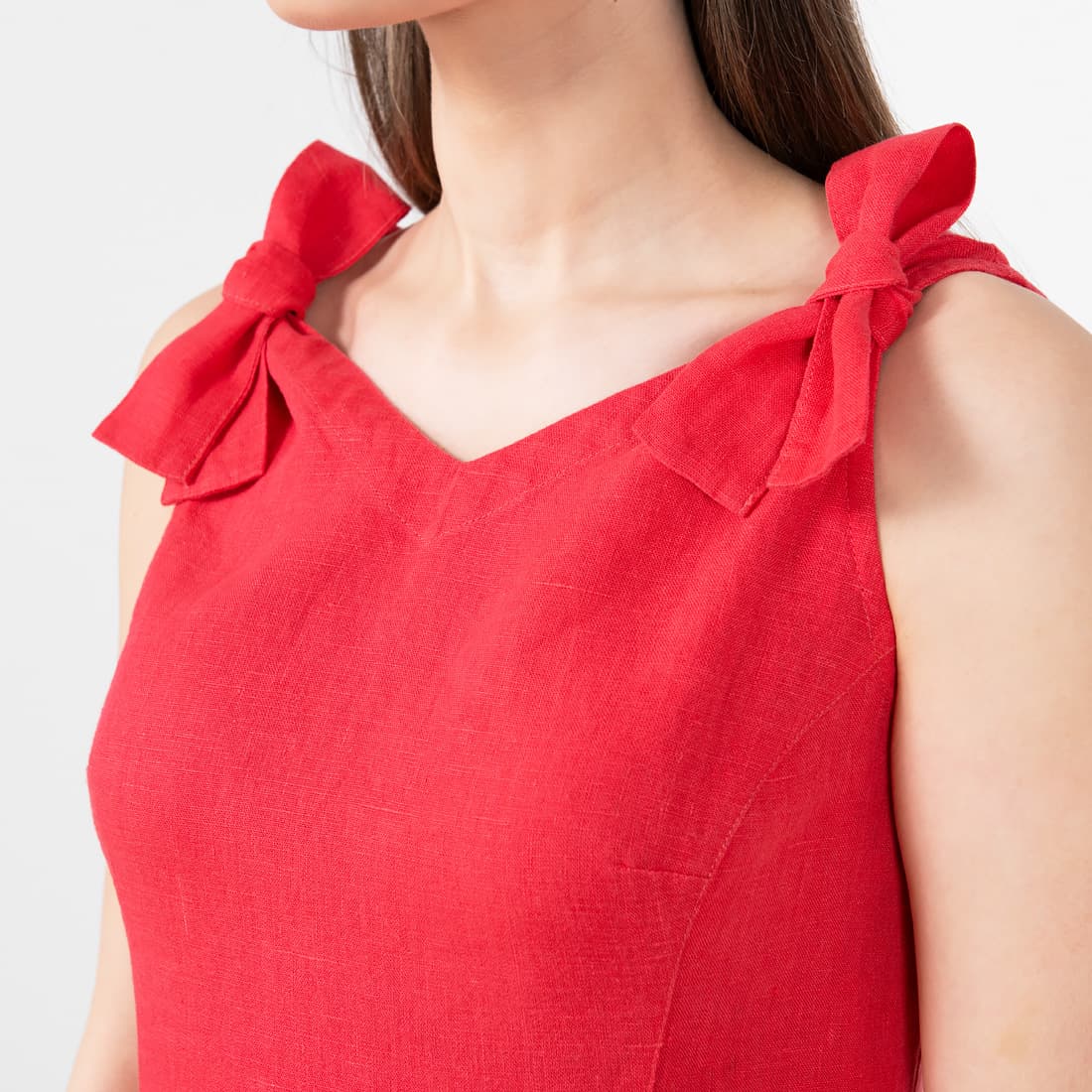 • TUSCANY lininė raudona suknelė puošta kaspinėliais, kuriuos galima nuimti