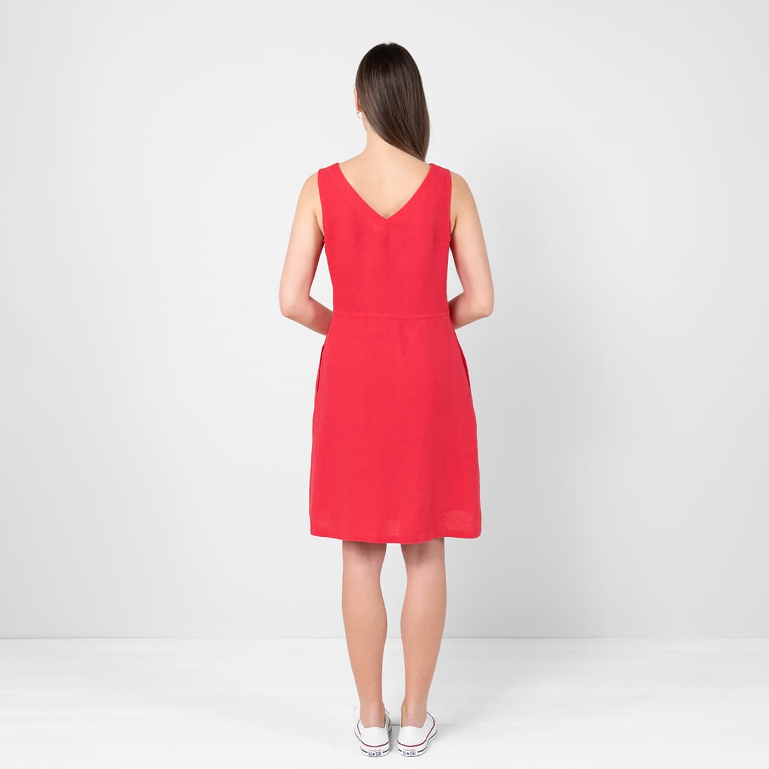 • TUSCANY lininė raudona suknelė su kišenėmis