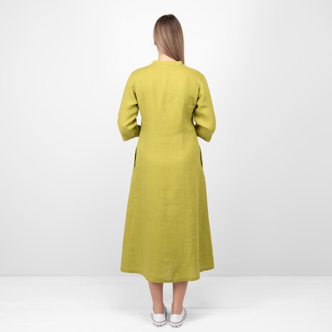 • Lininė gelsvai žalia suknelė su kišenėmis