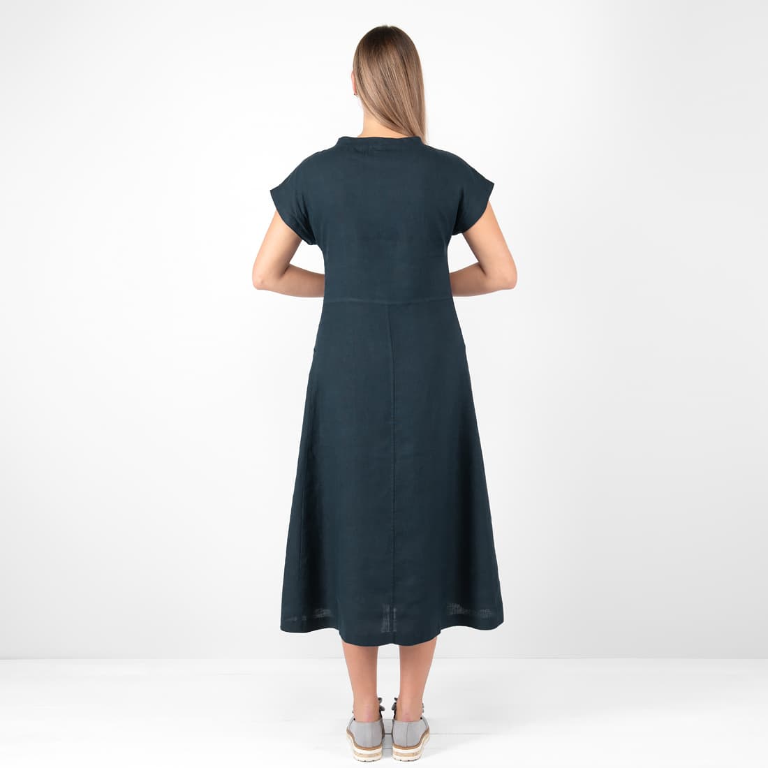• VERENA lininė tamsiai mėlyna suknelė trumpomis rankovėmis