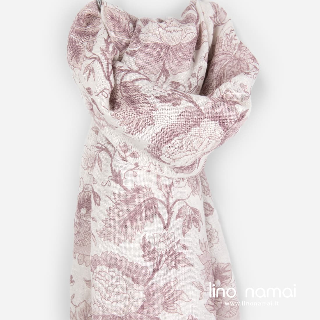 Lengvas gėlėtas lininis šalikas: rausvos spalvos gėlės margintos ant balto fono. Trumposios kraštinės užbaigtos 2cm ilgio pešiotais kutais. Gaminio audinys skalbtas specialiu būdu, kad būtų minkštas, švelnus, draugiškas odai. Švelnios spalvos ir augaliniai motyvai nuostabiai papuoš Jus pavasario / vasaros sezonui, suteiks įvaizdžiui žaismingumo. Įsigykite jau dabar!