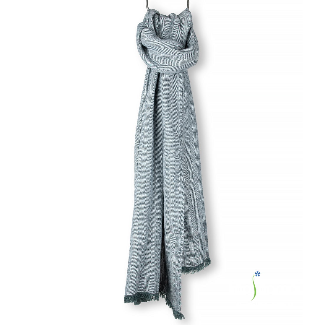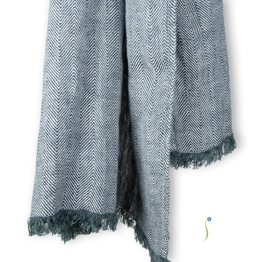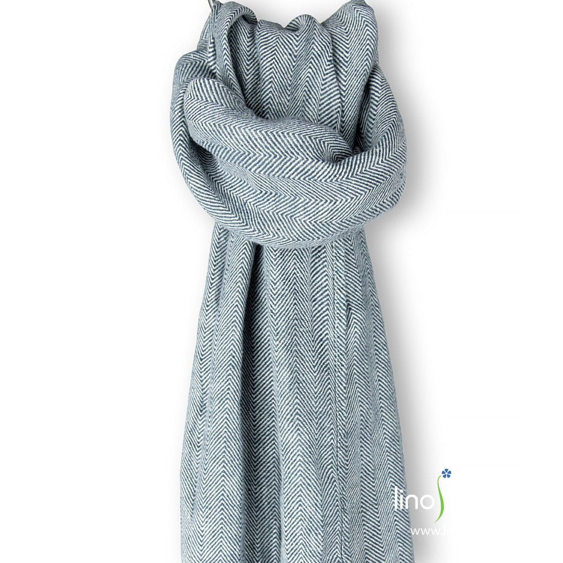Lininis šalikas mėlyna „eglute“, išausta iš pieno baltumo (gelsvai baltų) ir tamsiai mėlynų su žalsvu atspalviu verpalų. Trumposios kraštinės su 2,5cm ilgio pešiotais žaismingais kutais. Gaminį pasiuvome iš specialiu būdu skalbto 100% lino audinio. Šis šalikas džiugins Jus minkštumu, švelnumu, savo spalva derinsis prie mėlynų atspalvių aprangos (tiek vyriškos, tiek moteriškos).