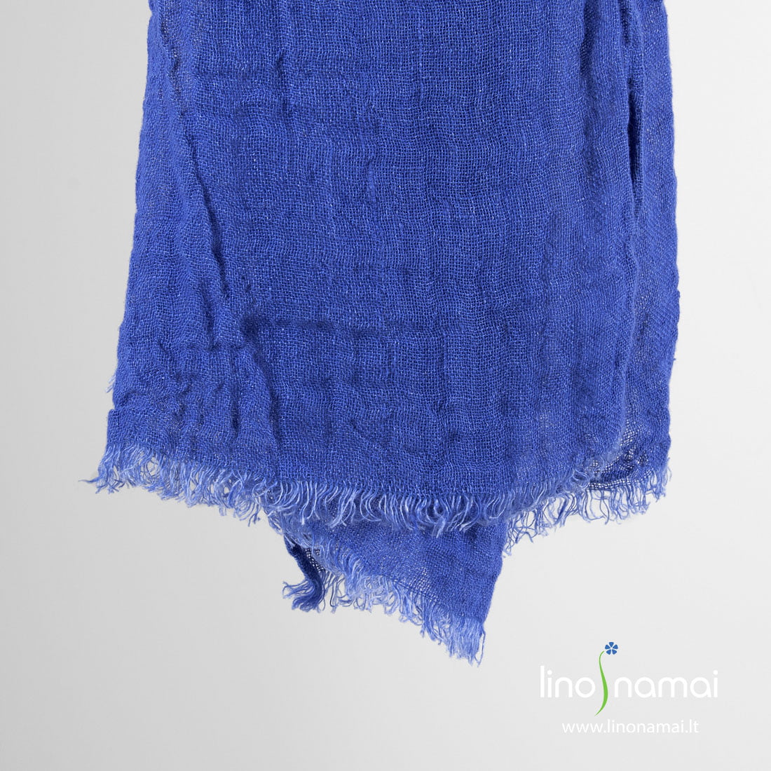 Lininis šalikas ryškiai mėlynas su 2cm ilgio pešiotais kutais trumposiose kraštinėse. Lengvas retas 100% lino audinys prieš siuvimą buvo išskalbtas specialia technologija, todėl šis aksesuaras džiugins Jus minkštumu ir švelnumu, jį labai malonu ryšėti. Jei jau kuris laikas ieškote akį ryškia spalva traukiančios aprangos detalės, rekomenduojame įsigyti šį lininį šaliką!