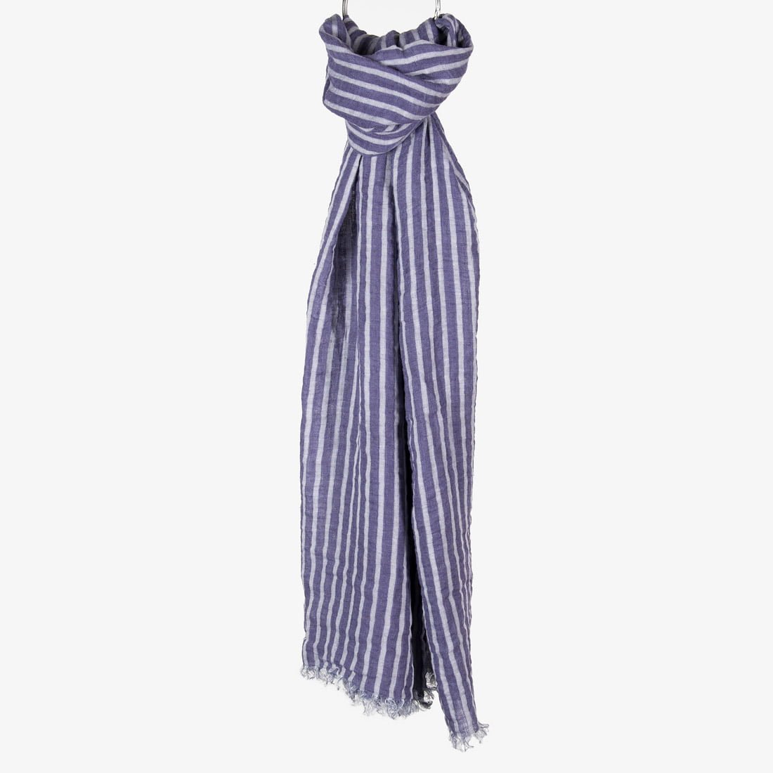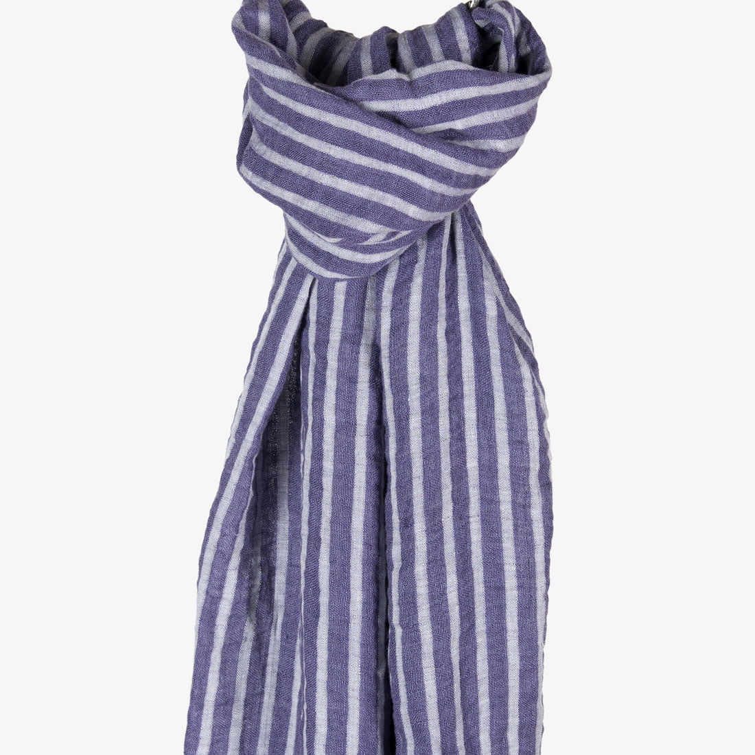 Lininis šalikas violetinis dryžuotas. Vertikalias šio gaminio audinio juosteles išaudėme iš violetinių ir melsvai pilkšvų verpalų. Trumpąsias kraštines papuošėme pešiotais 2,5cm ilgio kutais. Kad Jums būtų malonu ryšėti šį šaliką, išskalbėme jį specialia technologija. Jis minkštas, švelnus, draugiškas odai. Melsvos ir violetinės juostelės, spalviškai taip puikiai derančios tarpusavyje, tikrai papuoš panašių spalvų drabužių derinį. Nedvejokite ir įsigykite!