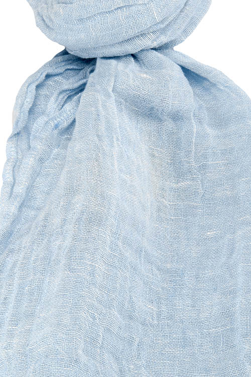 Melsvos spalvos lengvutis, skalbtas lino šalikėlis. Krašteliai puošti melsvais 2cm. pešiotais kutais. Praktiškas, stilingas ir patrauklus lininis šalikas tiks bet kokiam stiliui, bet kuriuo metų laiku.