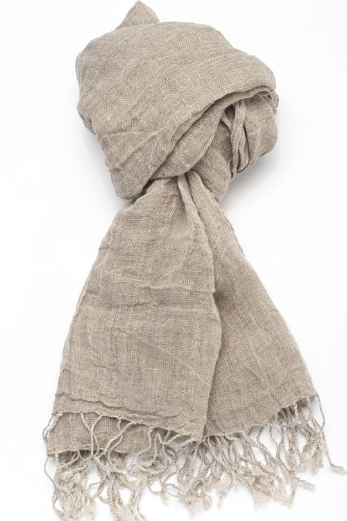 Pilkas lininis skalbtas šalikas pagamintas iš lengvo ir reto audinio. Krašteliai puošti rankų darbo suktais kutais. Pilkas lininis šalikas gali būti puikus ir naudingas aksesuaras šaltą dieną, be to, nuolat keisdami šaliko ryšėjimo būdą, kaskart atrodysite vis kitaip ir visuomet originaliai bei stilingai.
