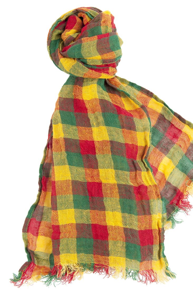 Lininis šalikas languotas trimis spalvomis: ryškiai geltona, sodriai žalia ir skaisčiai raudona. Trumposios kraštinės užbaigiamos 2cm ilgio pešiotais kutais. Šis ryškiaspalvis skalbto lino aksesuaras puikiai tiks pavasario / vasaros sezonui ar tautinėms šventėms.