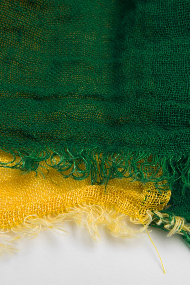 Minkštas, pramoniniu būdu skalbtas lininis šalikas, pasiūtas iš ryškiai geltonos, sodriai žalios ir skaisčiai raudonos spalvos audinių juostų. Trumposios kraštinės su 2cm ilgio pešiotais kutais. Norite padovanoti lietuviškos tautinės atributikos, pasipuošti valstybinėms šventėms, krepšinio varžyboms, išreikšti patriotinius jausmus? Šis šalikėlis tam tiks kuo puikiausiai!