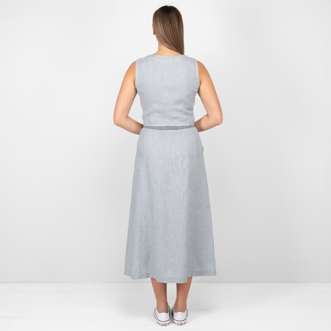 • Lininis pilkas sijonas ir deranti liemenė iš to paties audinio BRITTANY