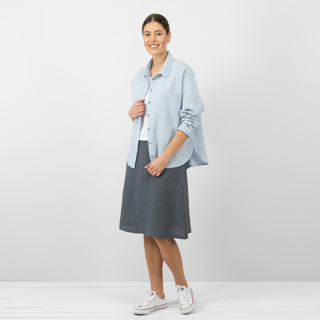 • Lininis pilkas sijonas su guma juosmenyje nugaroje