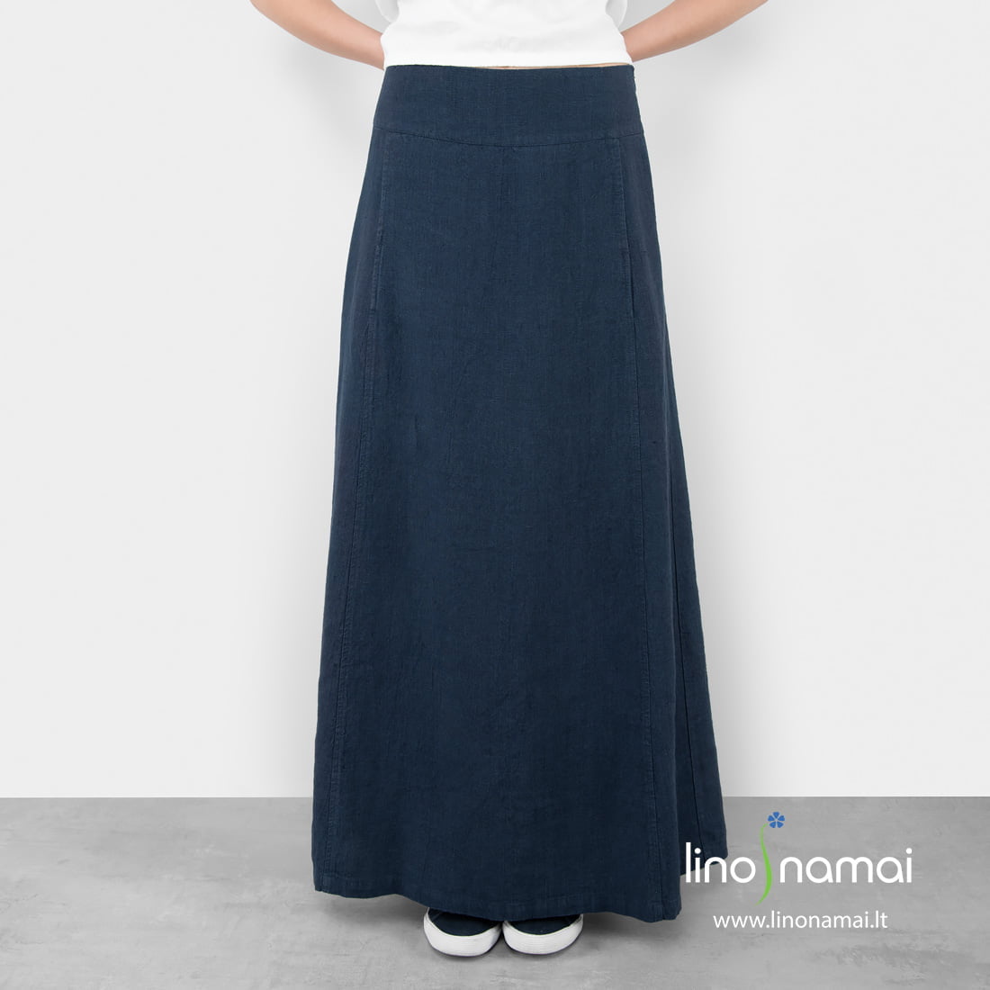 Lininis ilgas tamsiai mėlynas sijonas. Tamsi sodri solidi spalva ir subtilus dizainas leis vilkėti šį sijoną pačiomis įvairiausiomis progomis: ir bohemiškuose vakarėliuose, ir šventinėmis progomis, ir puoštis darbo dienai biure. Tikrai universalus drabužis. Priderinkite ir lininę palaidinę iš mūsų parduotuvės. Įsigykite jau šiandien, atrodykite stilingai visą vasarą. Šį sijoną siūlome net iki 54 dydžio!