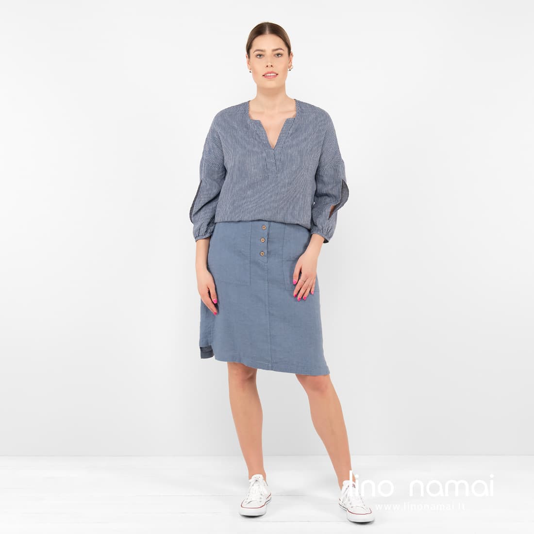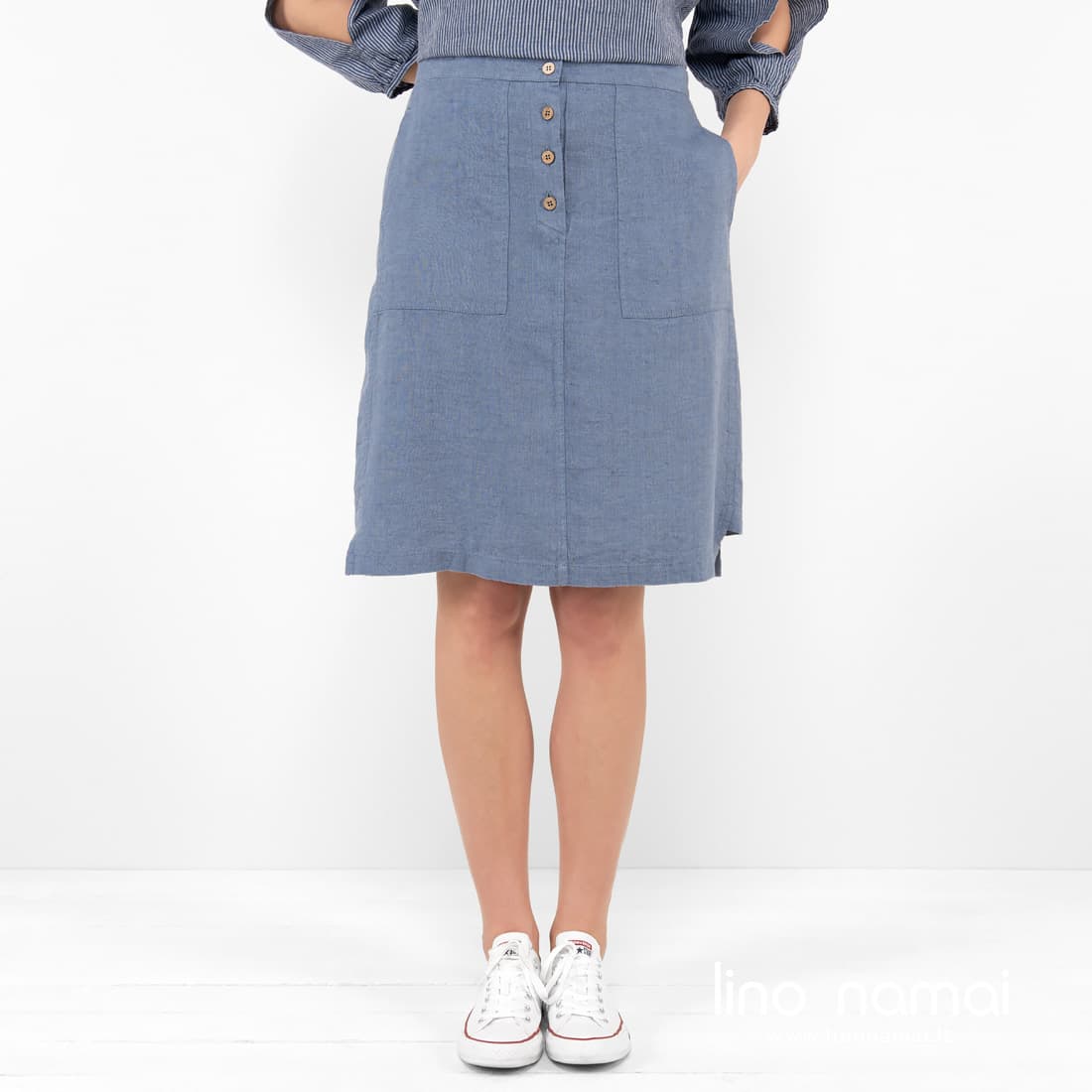 • TIFA lininis mėlynas sijonas su kišenėmis