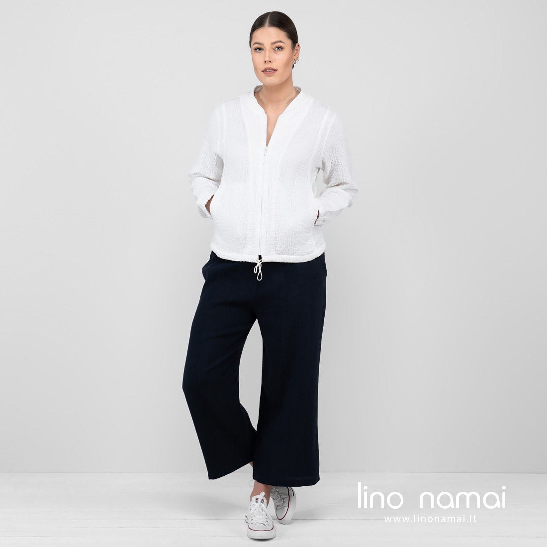 • Lininis baltas bomber švarkelis ilgos rankovės, kišenės.