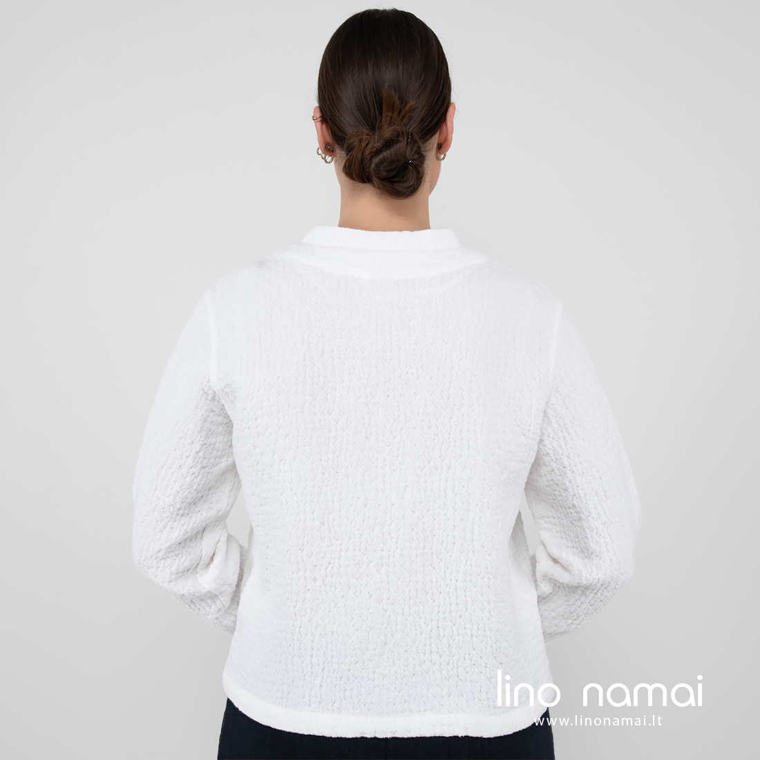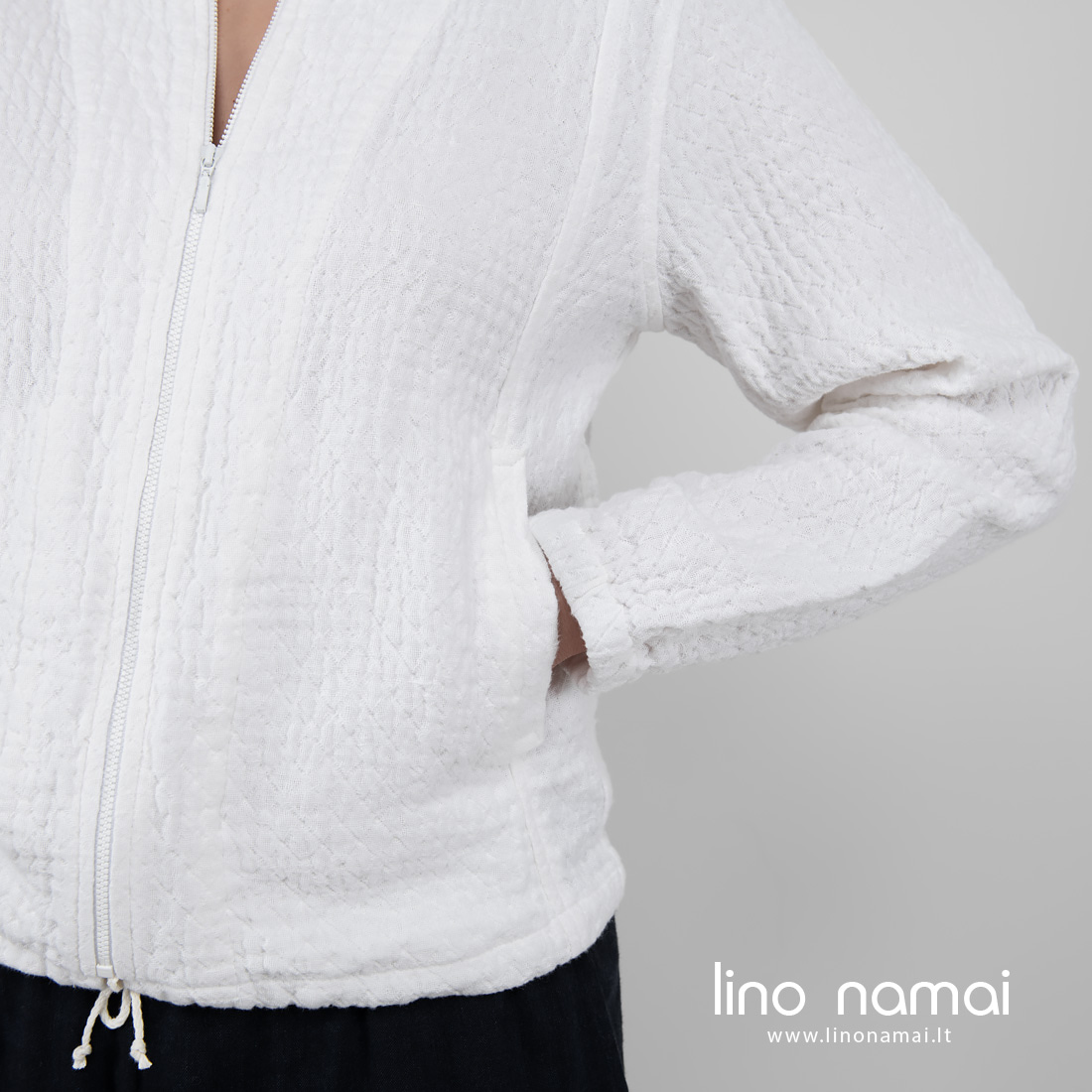 • Lininis baltas bomber švarkelis žakardas, rombo raštu.