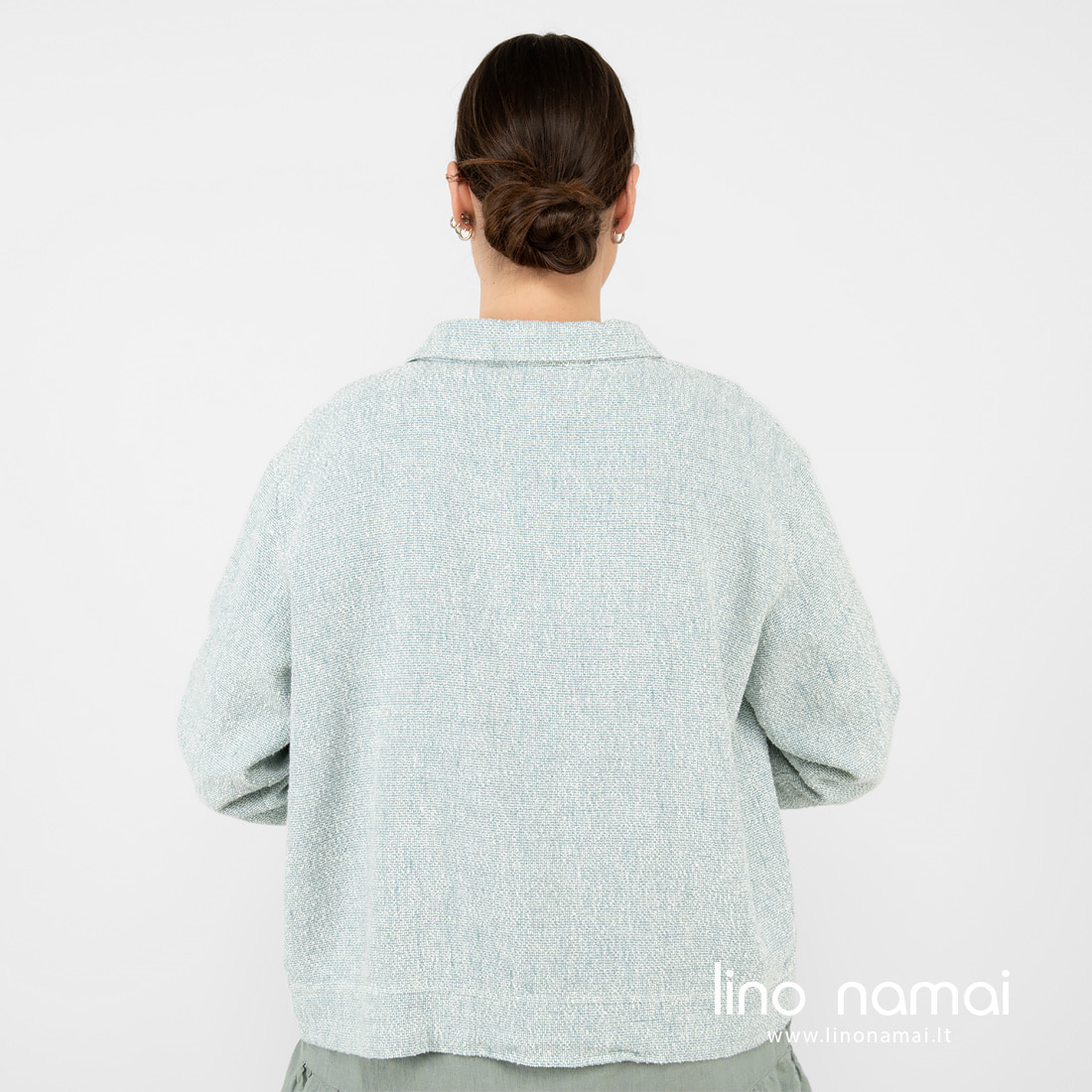 • Puslininis žalsvas švarkelis iš nugaros.