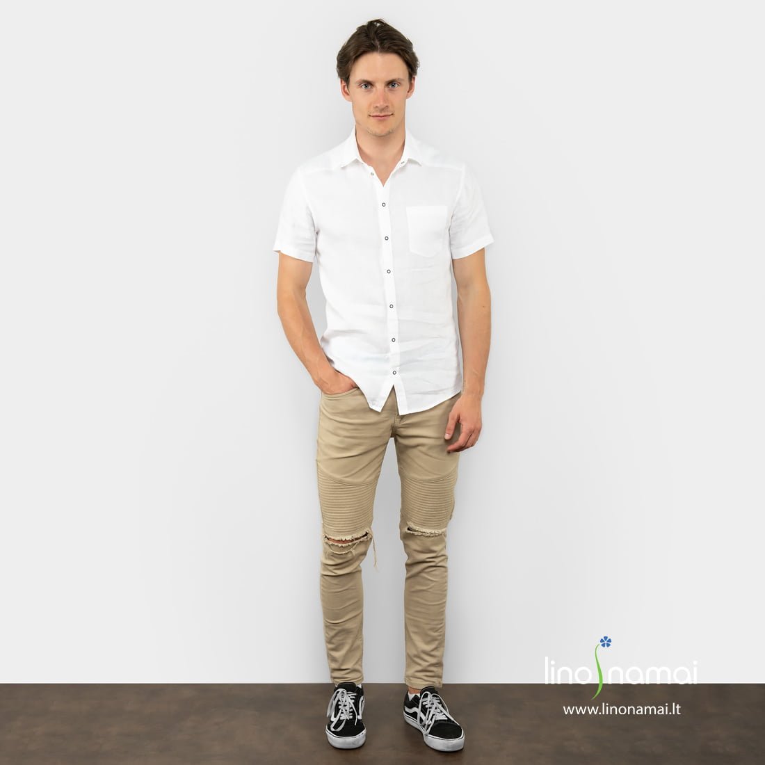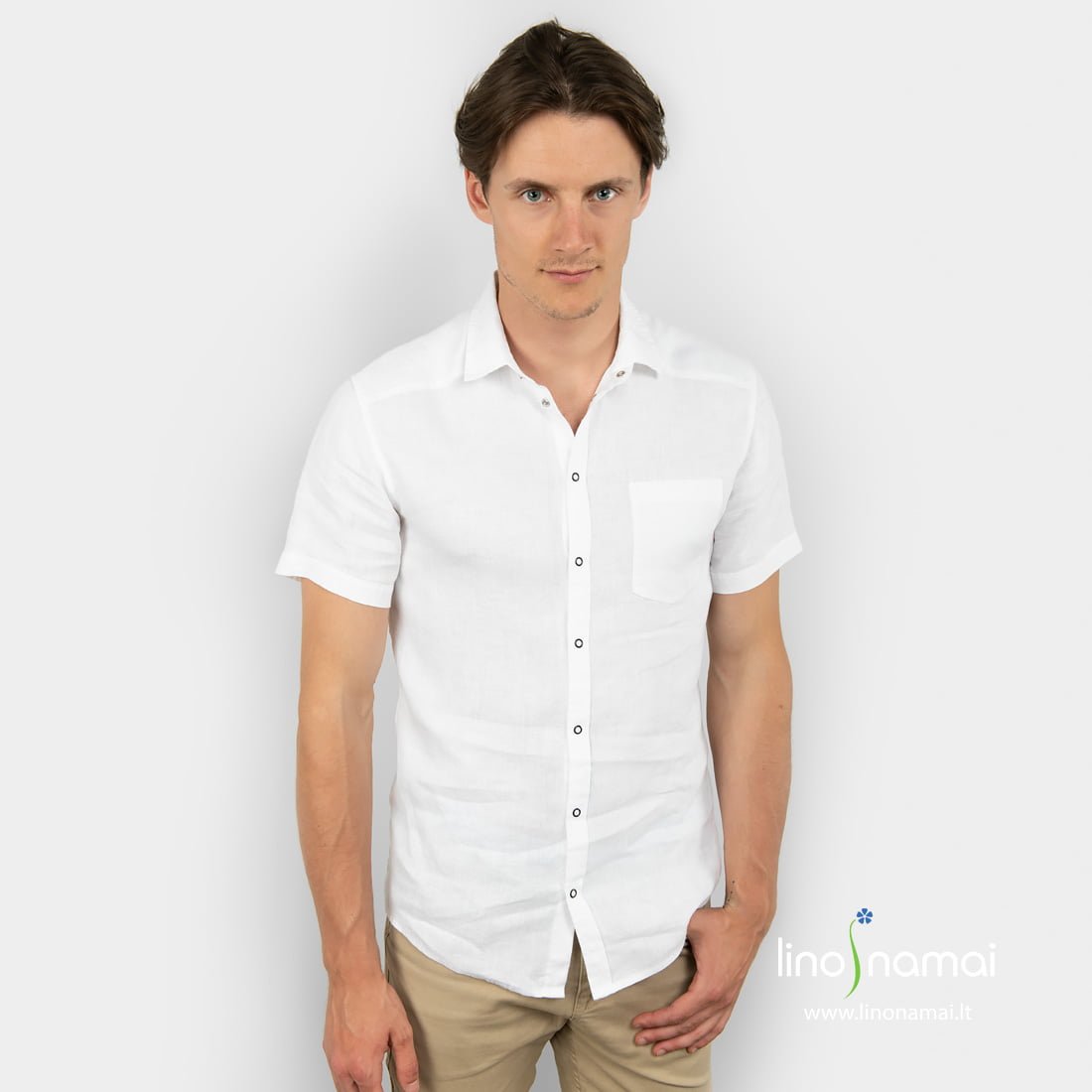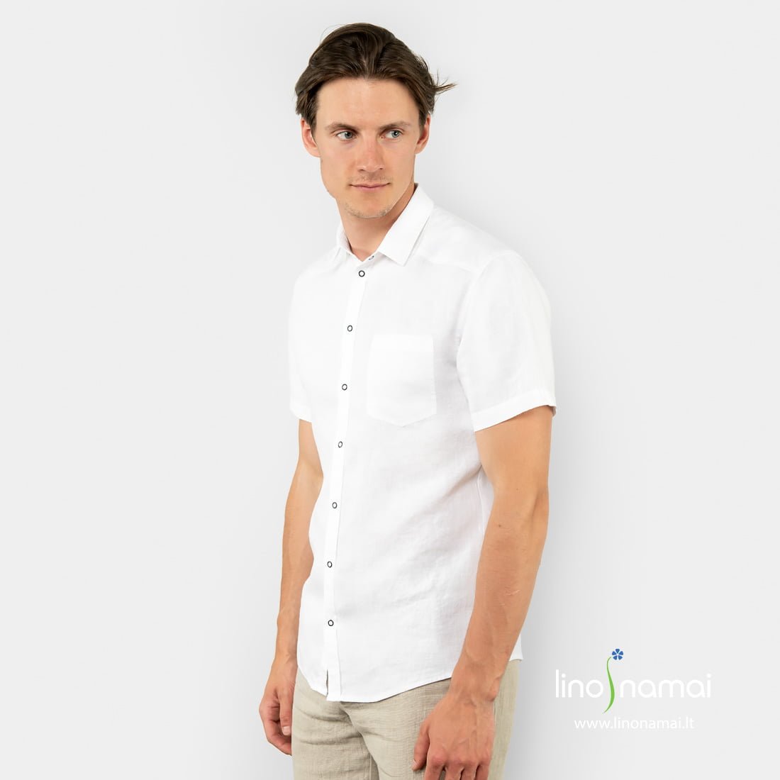 Ryškiai balto lino vyriški marškiniai ypač tiks gražioms vasaros šventėms, kai noris jaustis vėsiai, patogiai ir kartu stilingai.