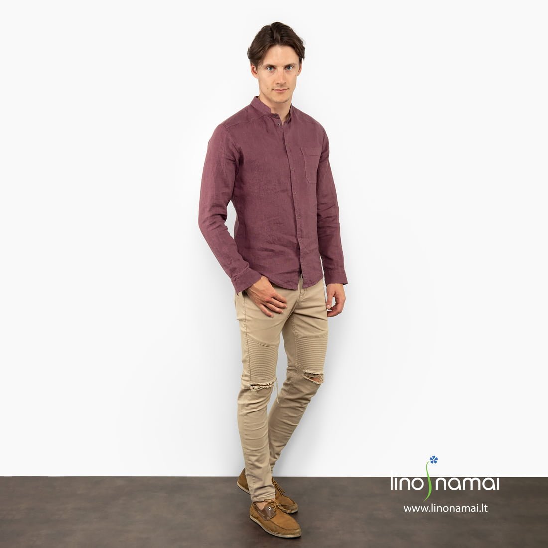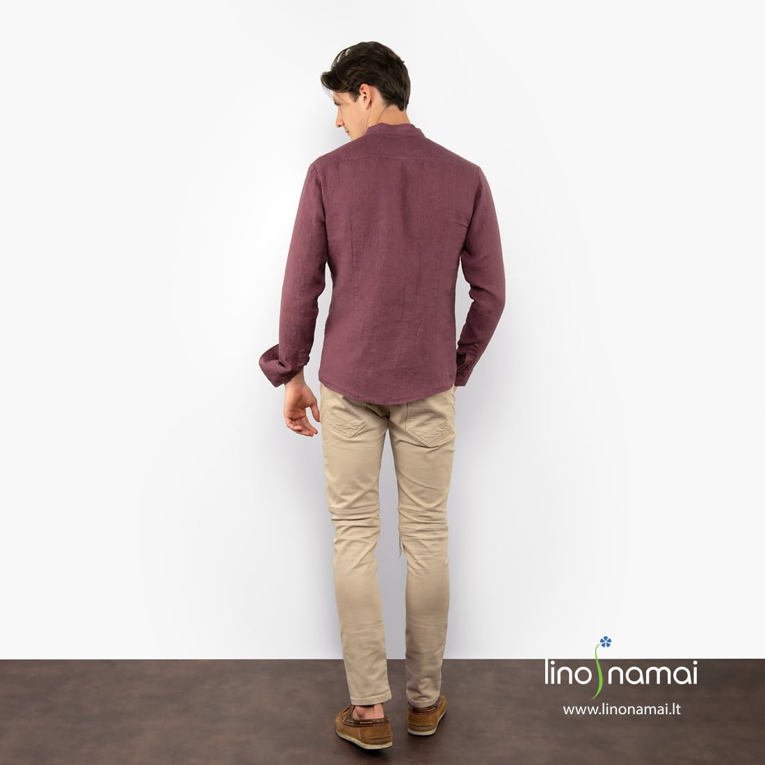 Vyšnių spalvos (tamsiai raudoni su vos juntamu violetiniu atspalviu) lininiai vyriški marškiniai. Drąsi ir kartu solidi spalva – tai ne tik patogus, elegantiškas, tačiau ir praeivių žvilgsnius tikrai traukiantis drabužis. Mėgaukitės lino teikiamu komfortu, būkite išskirtinis su šiais nuostabios spalvos marškiniais.