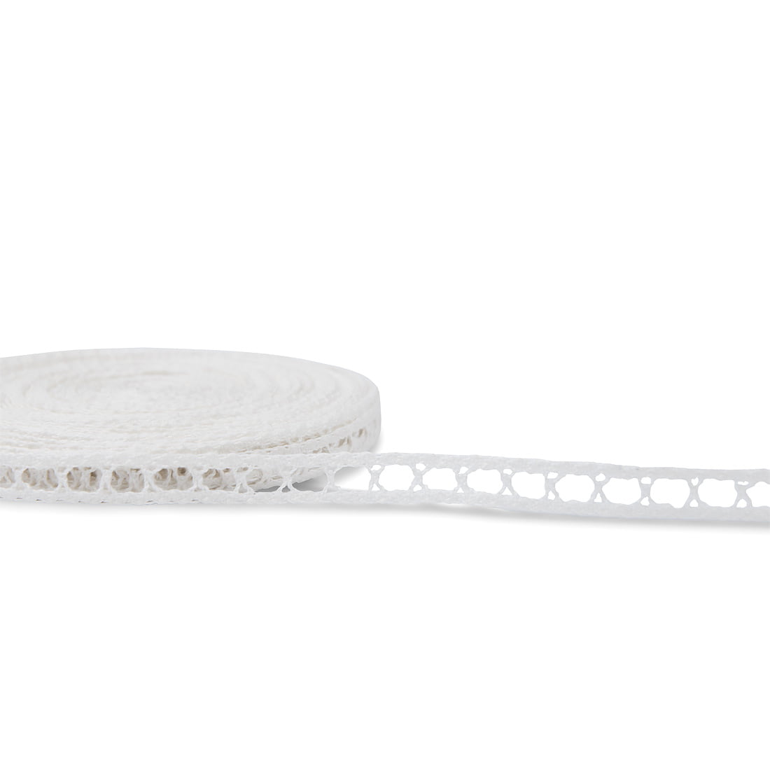 Baltas (gelsvai baltas, pieno spalvos) lino nėrinys nertas didelėmis akimis. Labai siauras (plotis tik 1,2 cm).