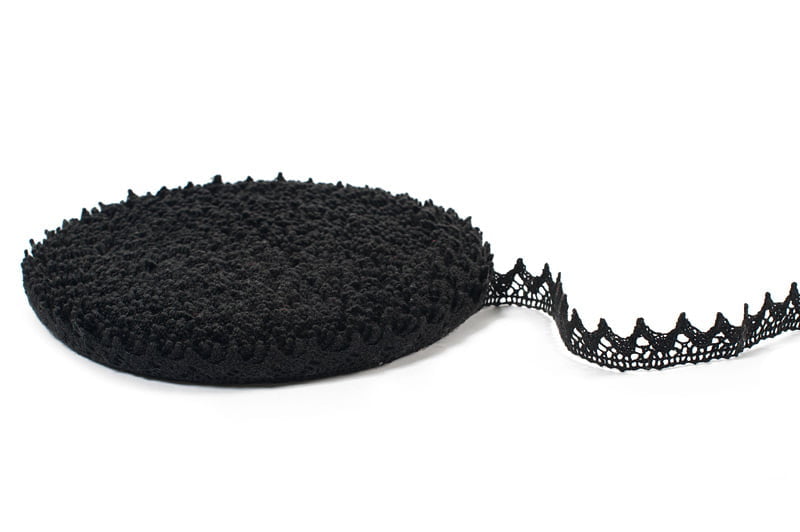Juodas lininis nėrinys. Dailus, siauras (2cm pločio) lininis nėrinys pagražins ne tik juodos, bet ir baltos ar pilkos spalvos drabužį, aksesuarą.