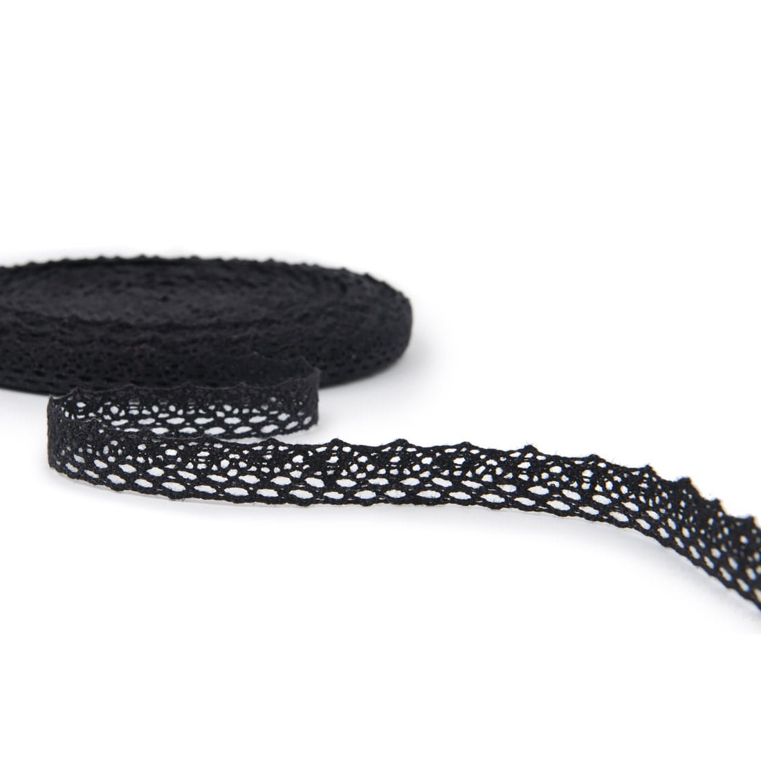 Lininis nėrinys siauras juodas, kurio plotis 1,5cm, dėl savo subtilaus rašto, elegantiškos spalvos ir natūralios sudėties puikiai tiks tamsesnių spalvų siuviniams dekoruoti.