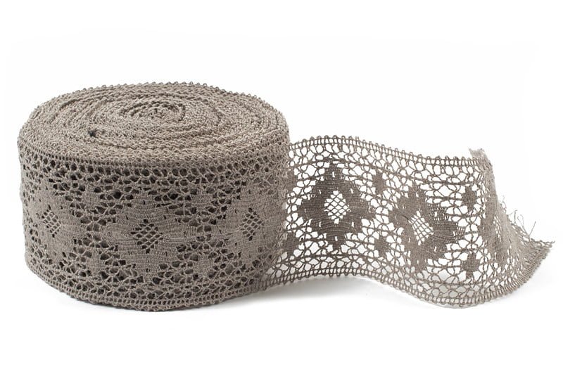 Lininis nėrinys Nr. 27 yra natūralios pilkos spalvos (nertas iš nedažytų 100% lininių verpalų). Rombų raštas. Nėrinio plotis 9cm.