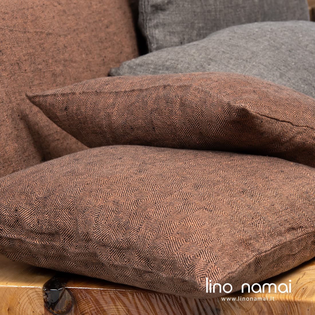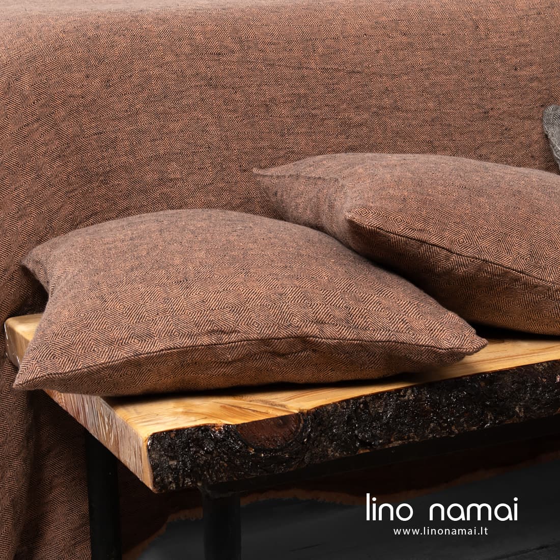 Dekoratyvinės pagalvėlės užvalkalas pasiūtas iš minkšto, švelnaus specialiai skalbto 100% lino audinio. Jį išaudėme ruoželio raštu dailiais rombais iš tamsiai pilkų ir pudros spalvos (rausvai rudų) verpalų. Užvalkaliukas su užtrauktuku patogiam pervilkimui. Mūsų parduotuvėje rasite ir didelių dydžių lovatiesių, savo audinio raštu tinkančių prie šio užvalkaliuko. Papuoškite savo namų interjerą!