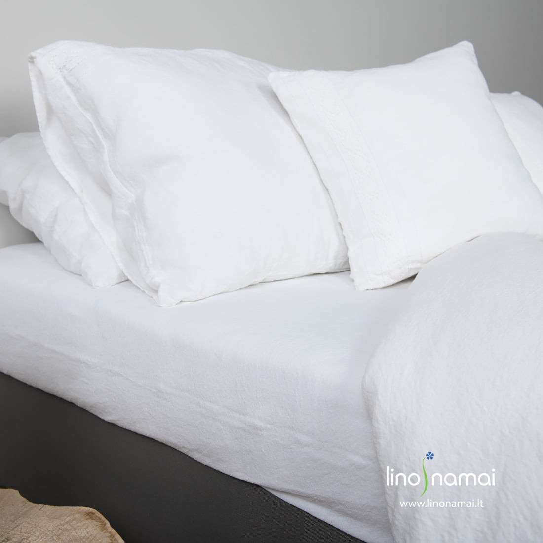 - Ryškiai balta paklodė gali būti paprastai apsiūta arba su guma.
