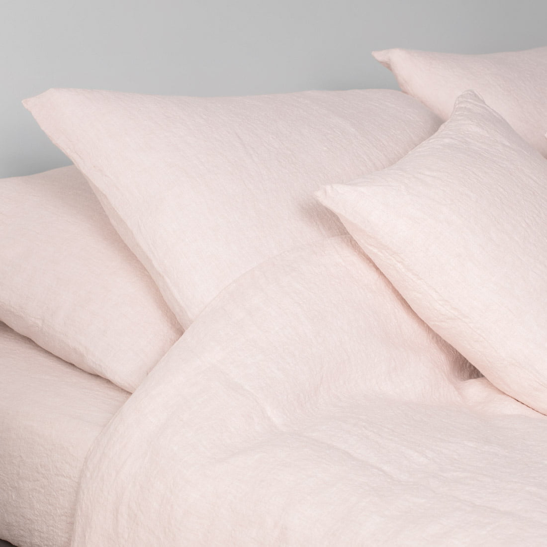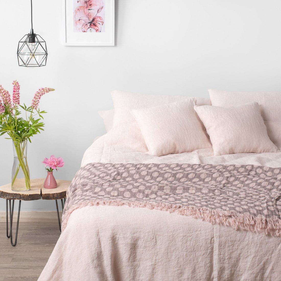 - Blyškiai rožinis lininis antklodės užvalkalas užsegamas sagomis apačioje.
