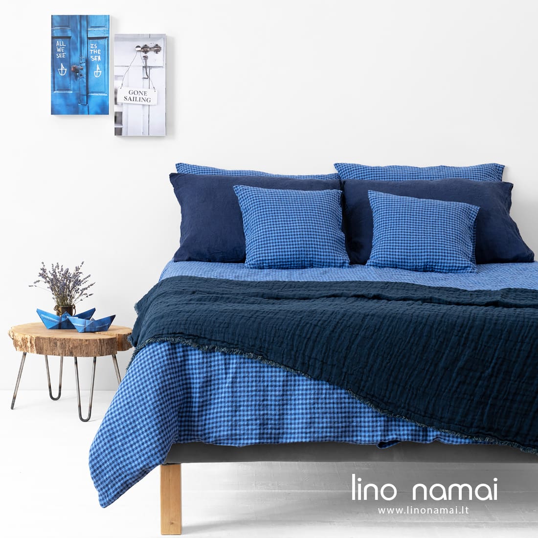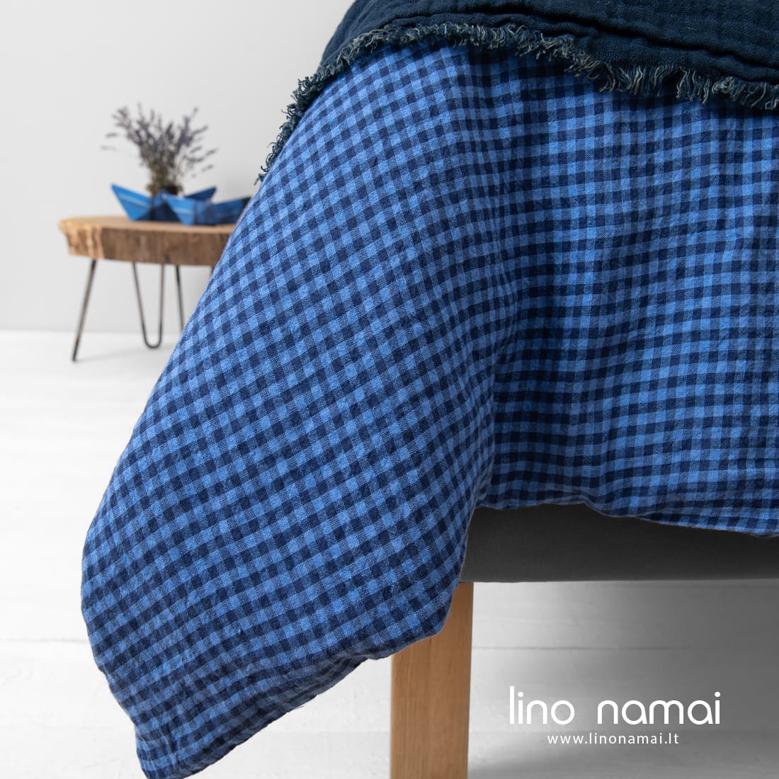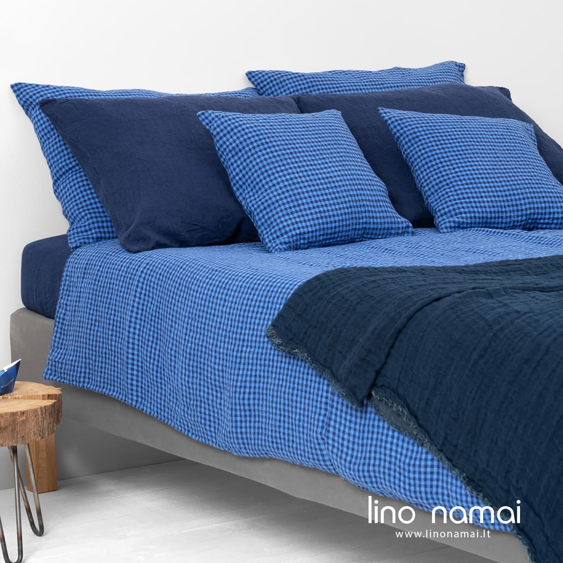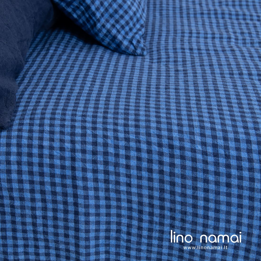 KOLKA lininė patalynė. Jos 100% lino audinį išaudėme smulkiais langeliais derindami mėlynus ir tamsiai mėlynus verpalus. Prieš siūdami gaminius liną skalbiame specialiu būdu, kad suminkštintumėme, padarytumėme jį švelnų. Toks audinys ypač malonus odai. Išmėginkite lino vėsumą ir nepaprastą švelnumą! Prie šios patalynės derinkite tamsiai mėlyną paklodę ir pagalvių užvalkalus iš kolekcijos PORTOFINO. Jaukumui sukurti rekomenduojame pledą PLAZA.