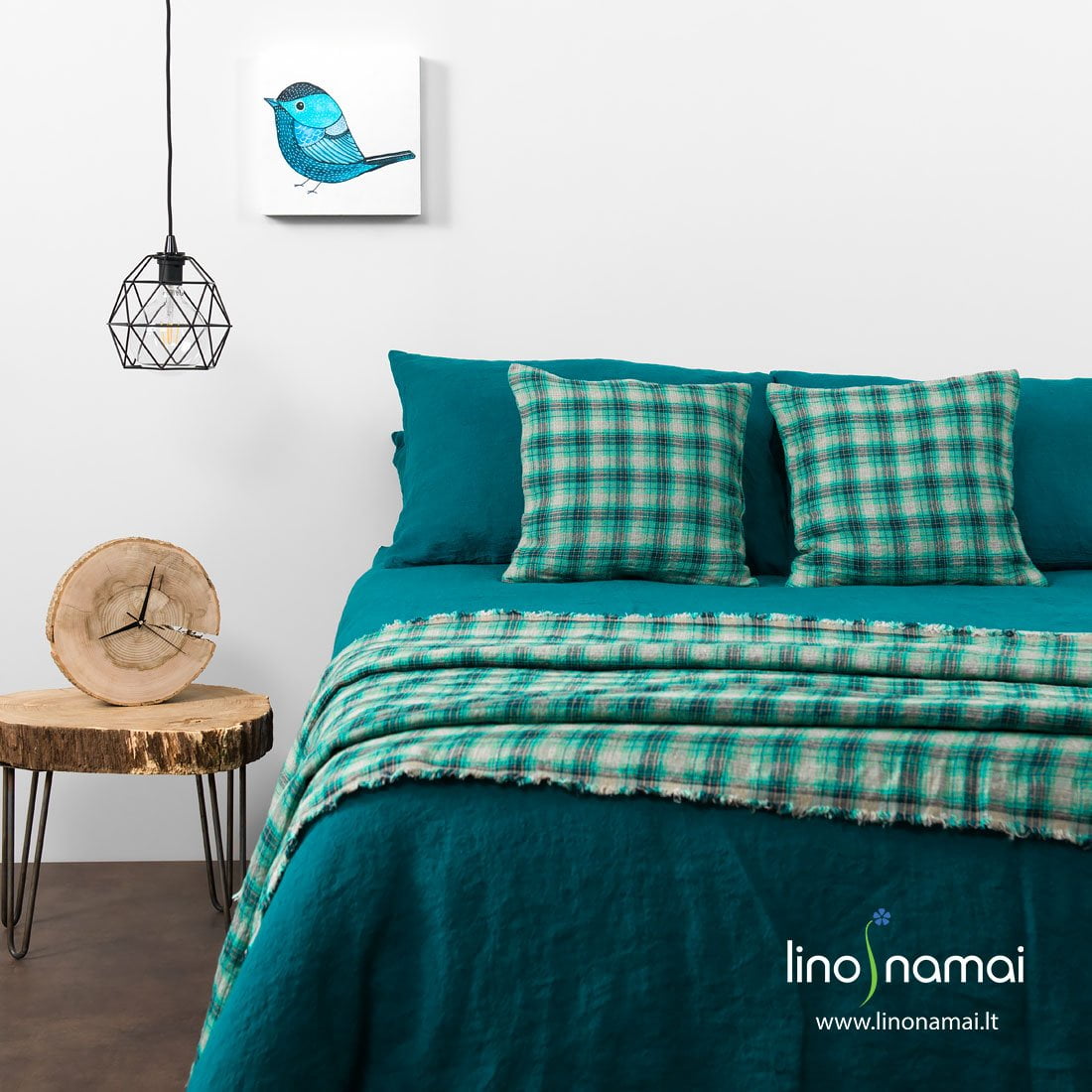 Lininė tamsios turkio spalvos patalynė iš minkšto švelnaus skalbto 100% lino audinio. Šis sodriai mėlynas su žaliu atspalviu audinys mums labai patinka, todėl nusprendėme iš jo pasiūti pagalvių, antklodžių užvalkalus, paklodes ir nuspalvinti Jūsų miegamąjį. Jei nebijote sodrių spalvų ar jų trūksta kaip akcento interjere, siūlome įsigyti ši lininės patalynės komplektą. Spalva papuoš, o nuostabiai minkštas natūralus audinys šildys ar vėsins (priklausomai nuo metų laiko), leis odai kvėpuoti ir taip pagerins poilsio, miego kokybę.